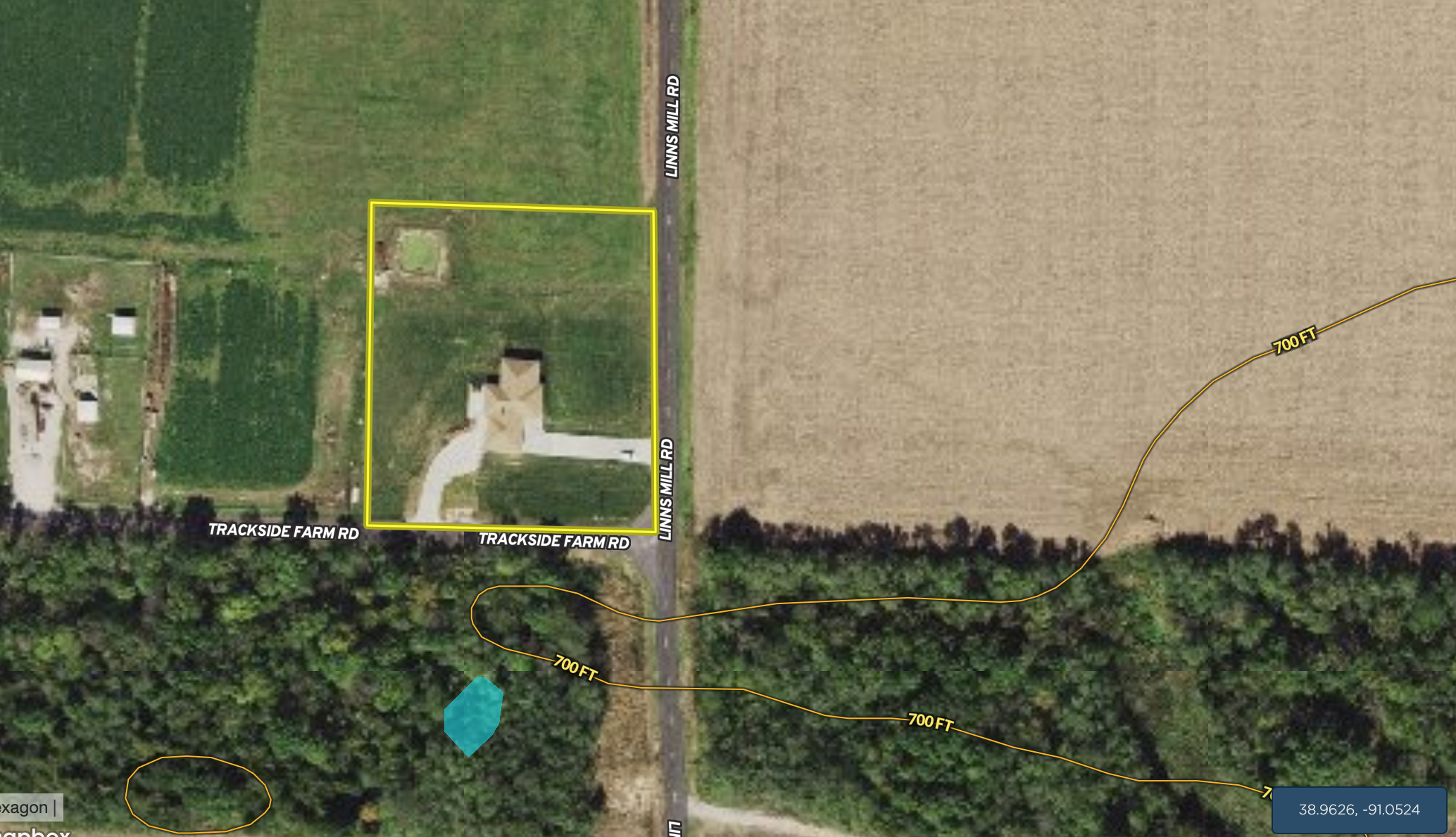 - 1 mile south of Hwy 47 with 330’ of road frontage on Linns Mill Road