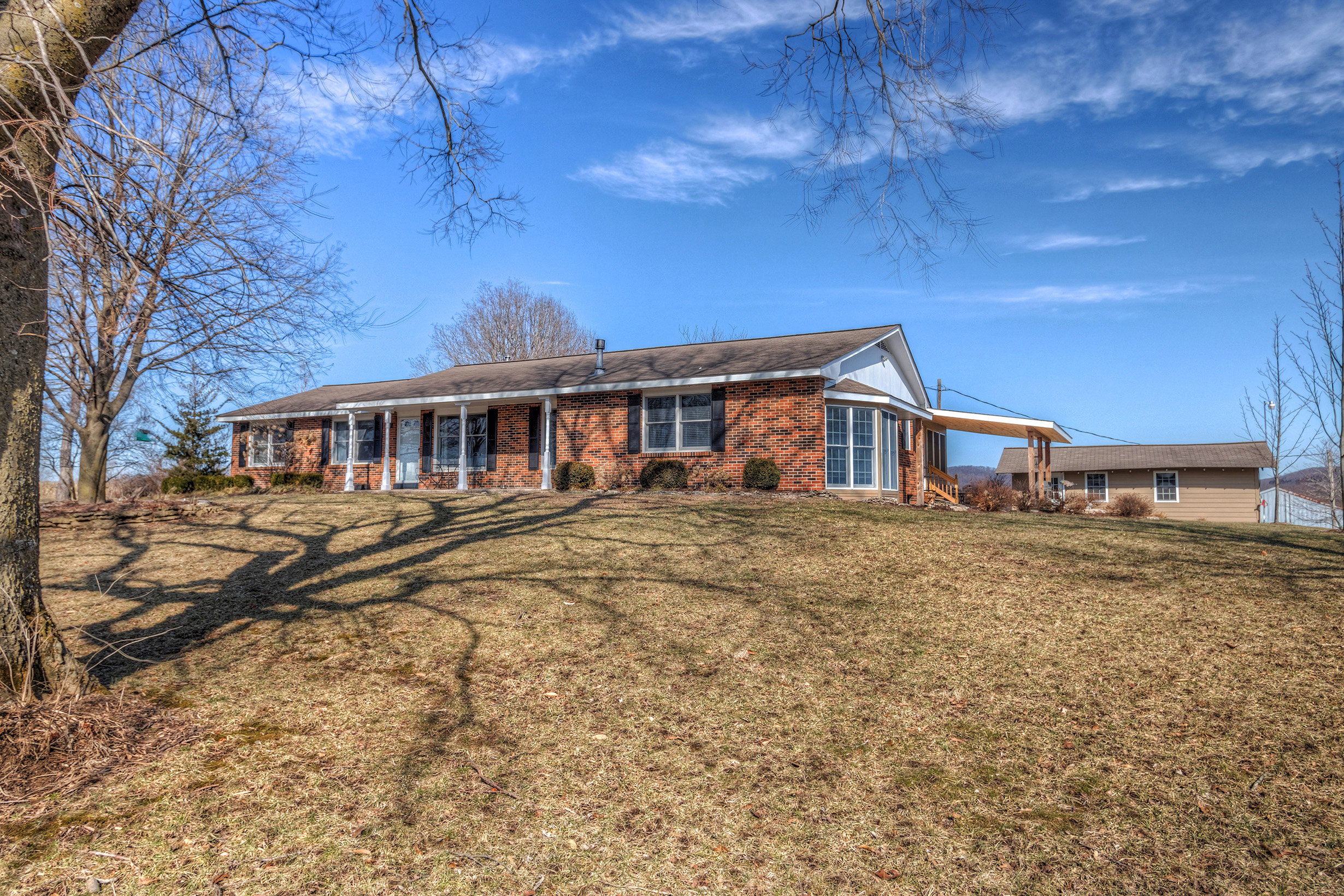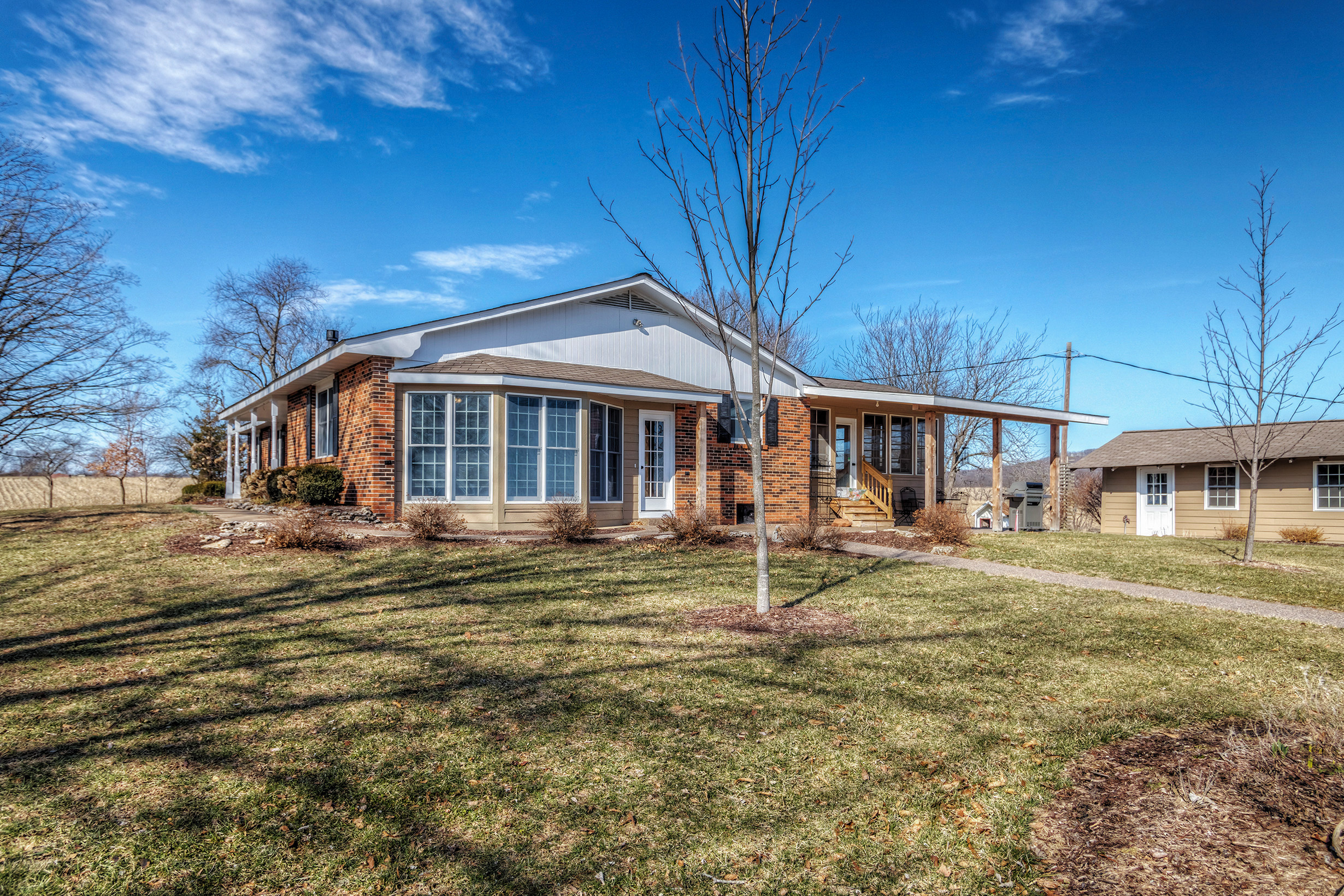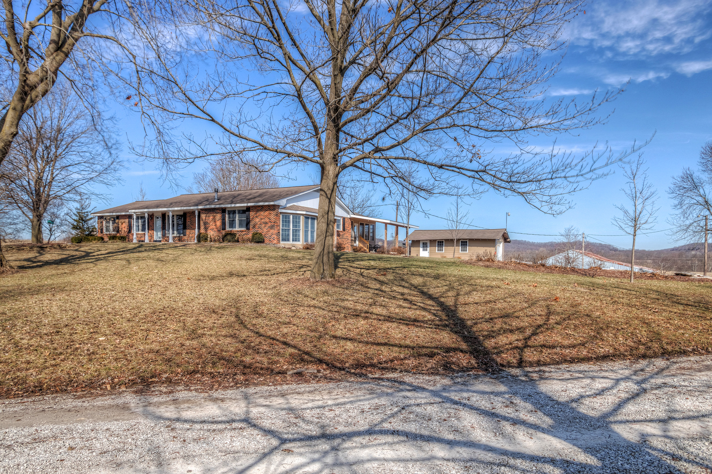 Take a look at this great tillable farm and home with amazing panoramic views. This farm is over 80% tillable with the majority of the farm being class 2 and 3 Menfro silt loam soils. A natural all weather spring flows into the beautiful rock bottom creek that meanders along the east boundary of the property making a great water source for livestock or wildlife. The Seller tells me he has never seen the spring run dry. Although primarily a tillable farm, there is a lot of heavy deer sign on this property with an abundance of rubs along the wooded draws. With some habitat management the deer and small game hunting could be pretty good! When you arrive at the farm you will drive up a tree-lined gravel driveway to a really nice 5 bed/3 bath custom-built brick home that makes for a wonderful residence. The house features spacious rooms, a sunroom, and a finished basement. There are plenty of windows on all sides of the home to let in sunlight so you can enjoy the serenity of the surrounding farmland and the views of the distant timbered knobs that this area is famous for. There is a machine shed that has electric and plumbing, and is perfect as a shop, and for storing farm equipment. Way too many details to list! To schedule a showing call today!