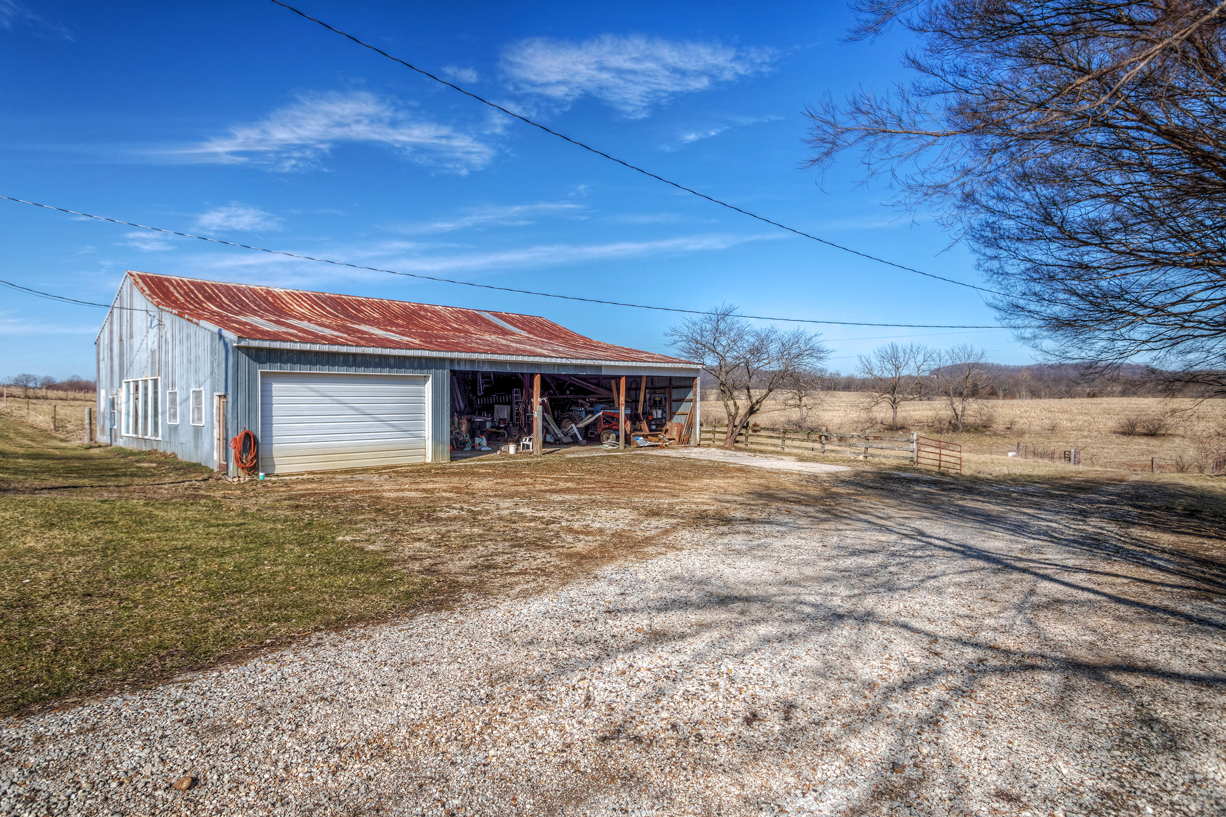 - Machine shed with shop area with electric and plumbing