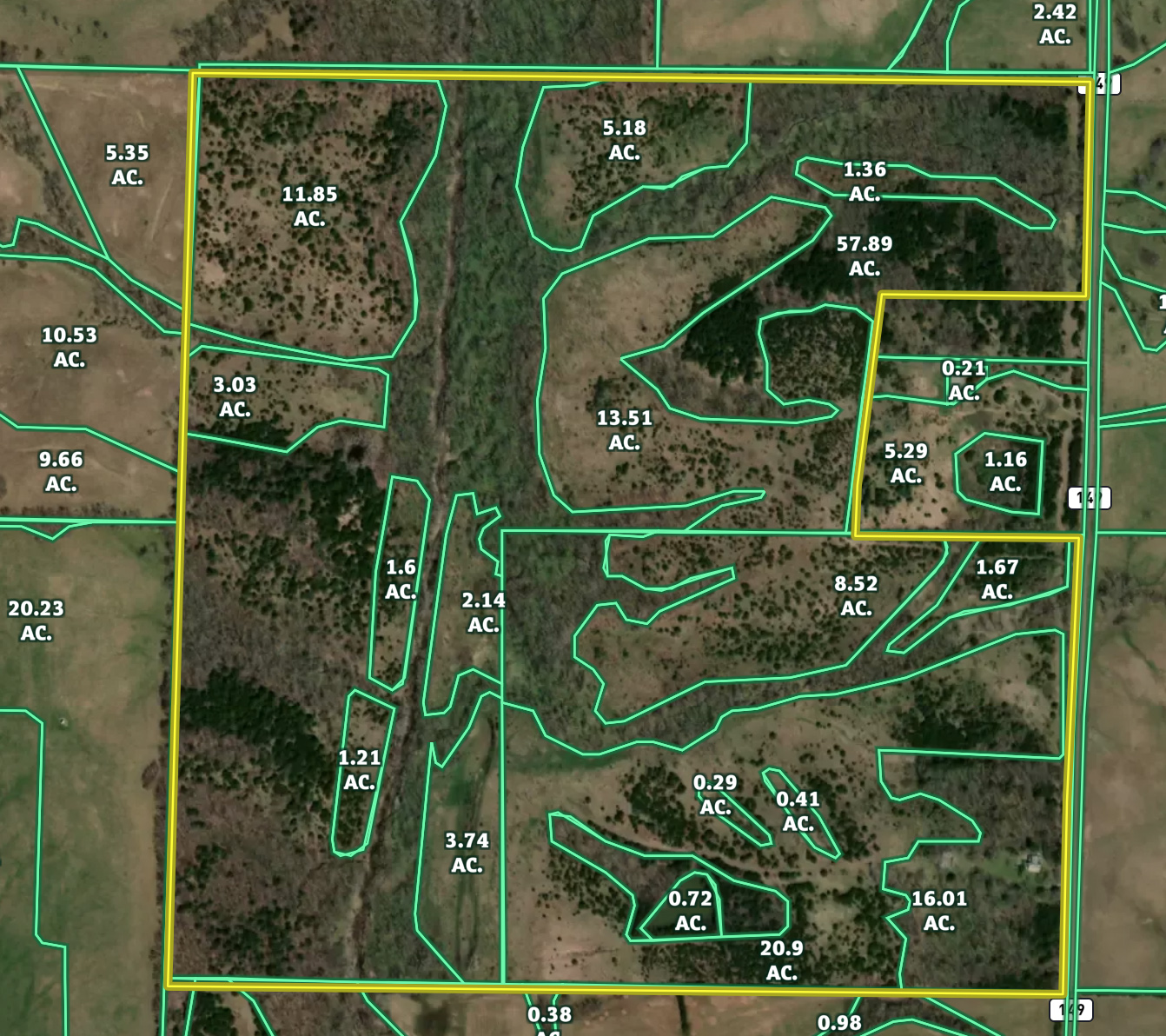 - Brush Creek runs through the property