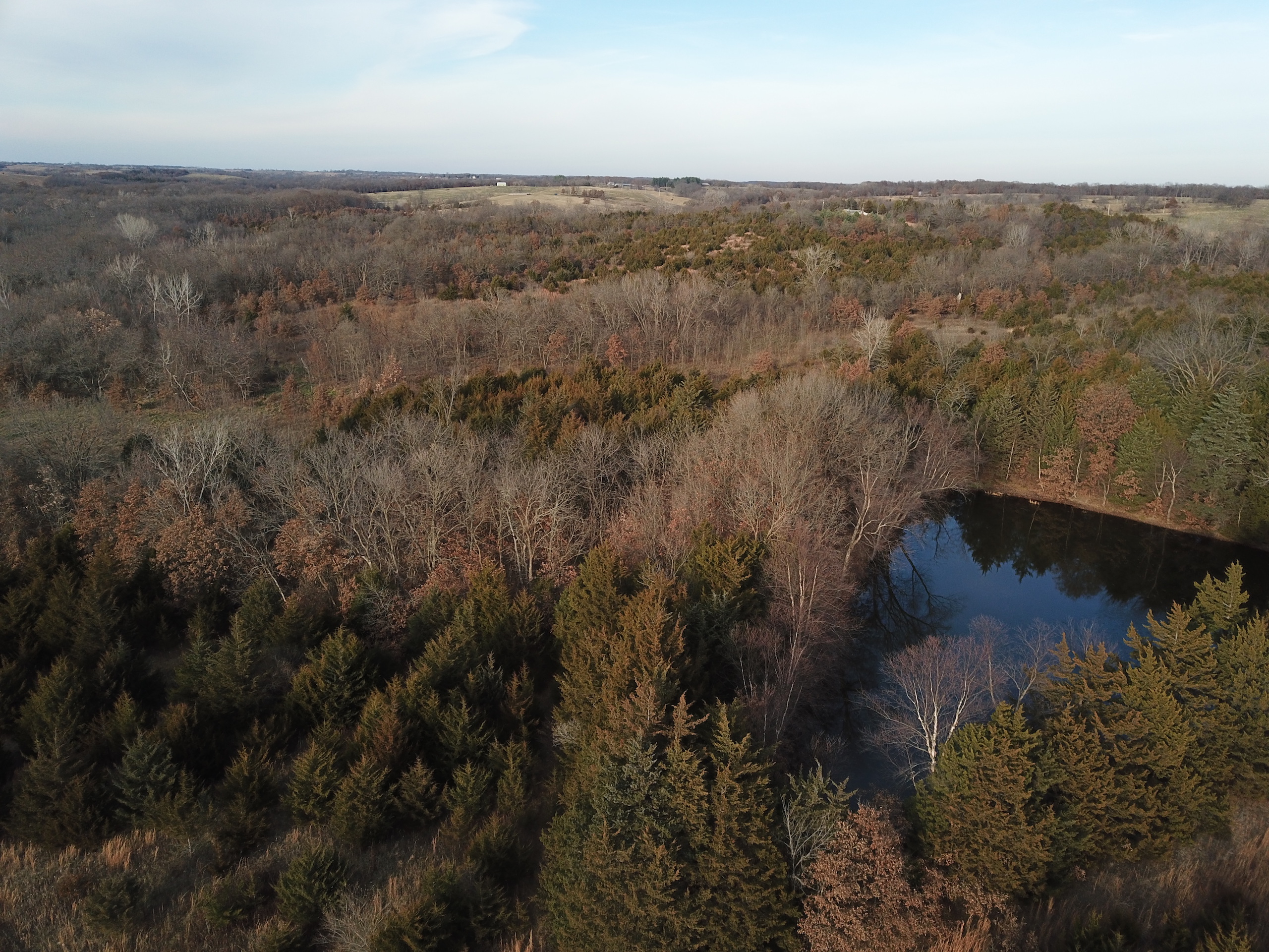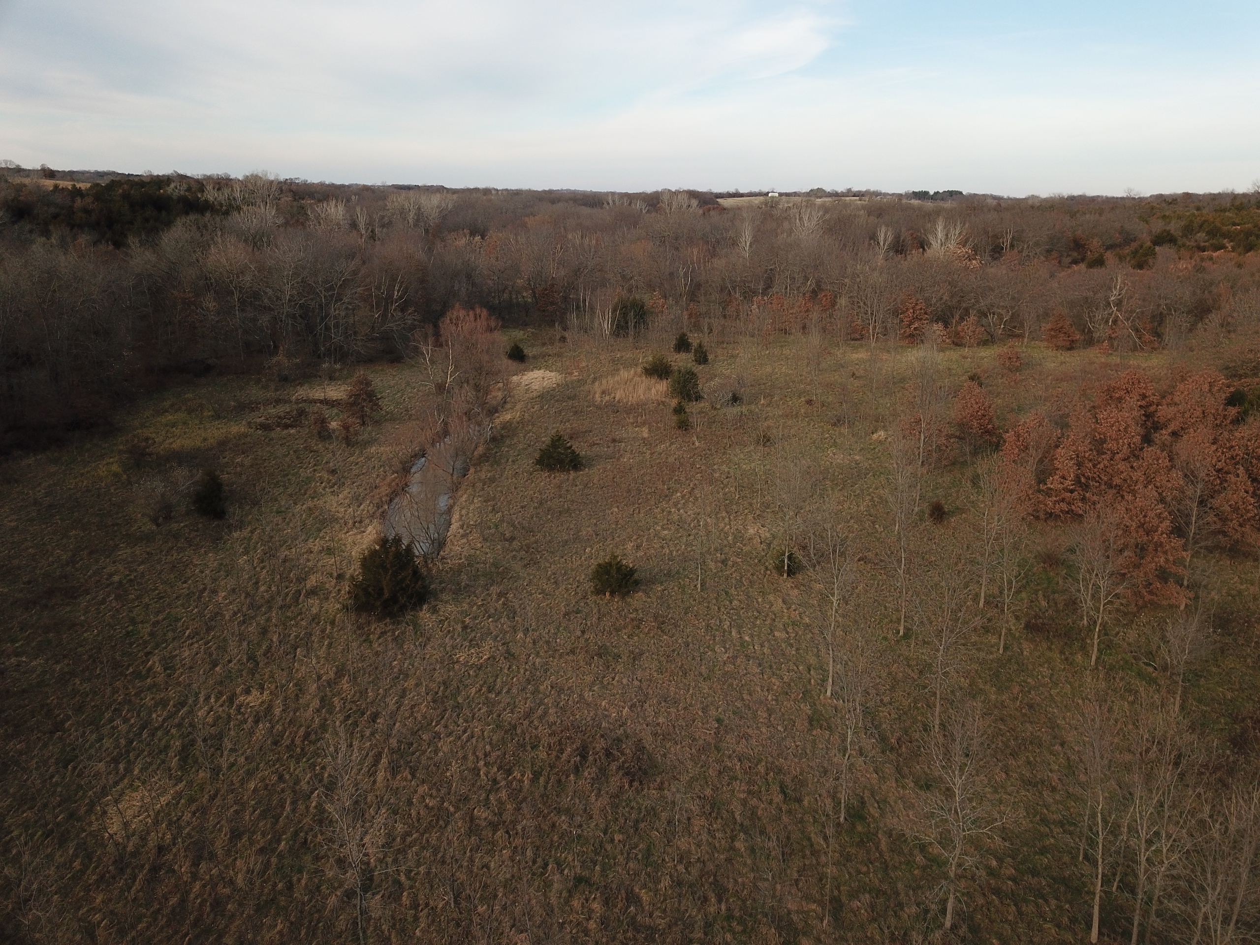 Here is a great looking hunting property that sits off a quiet blacktop road. The property is a mixture of timber and overgrown fields that have not been farmed in over a decade. The tall grass and new succession of brushy timber have created a huge bedding and nesting area for wildlife. A mowed trail system takes you down past a nice size pond surrounded by tall cedars and timber. A beautiful setting! This area would make a great location for a cabin or shouse. The property has electric and public water, with an all-weather faucet already installed. Believe it or not, there is even high speed fiber optic available at the road, a very rare find in rural property. Brush Creek runs north and south through the western portion of this property providing a water source and a great travel corridor for wildlife traveling to surrounding crop fields. It looks like a whitetail highway with all the trails, rubs and scrapes. Give me a call to schedule a private tour.