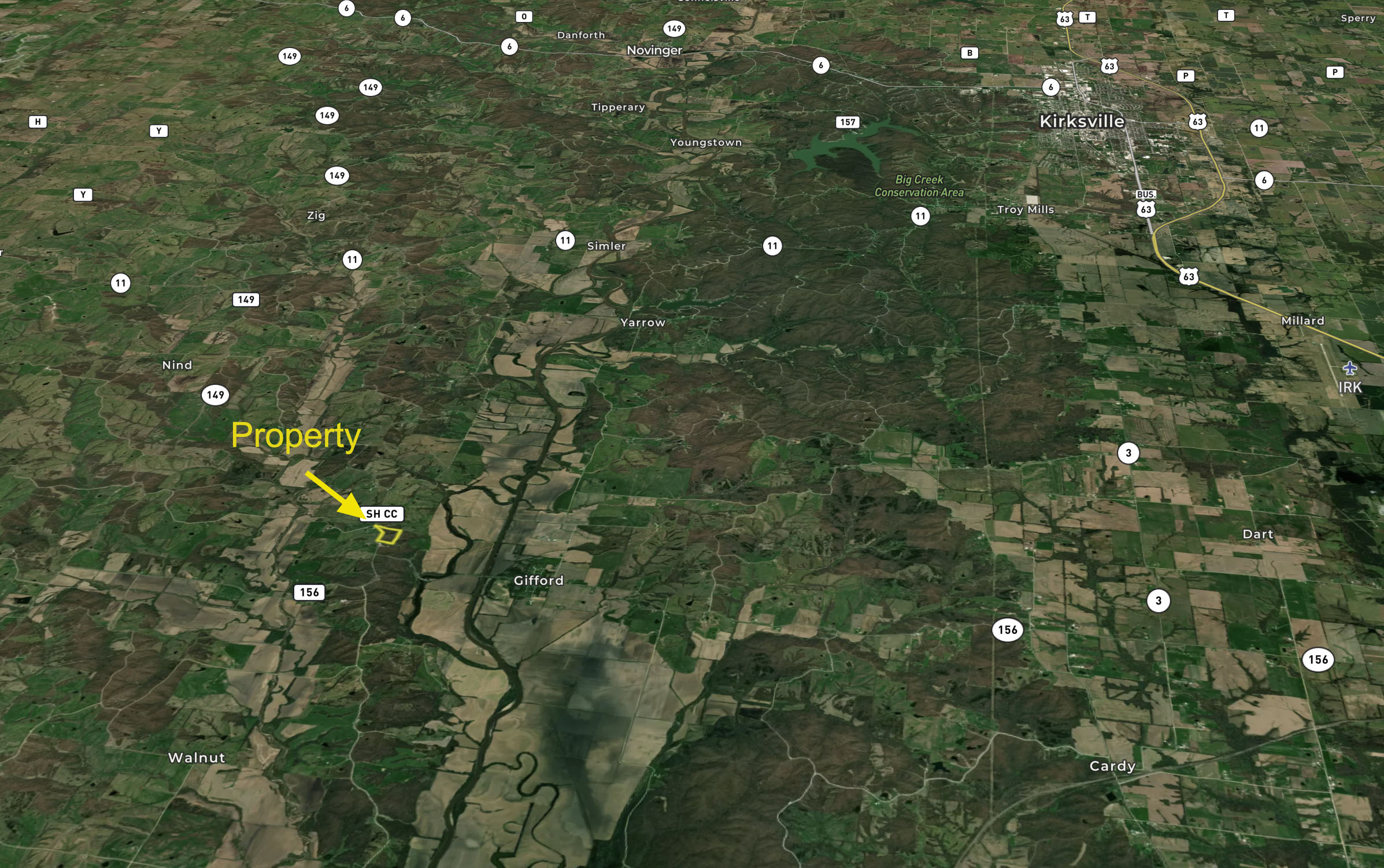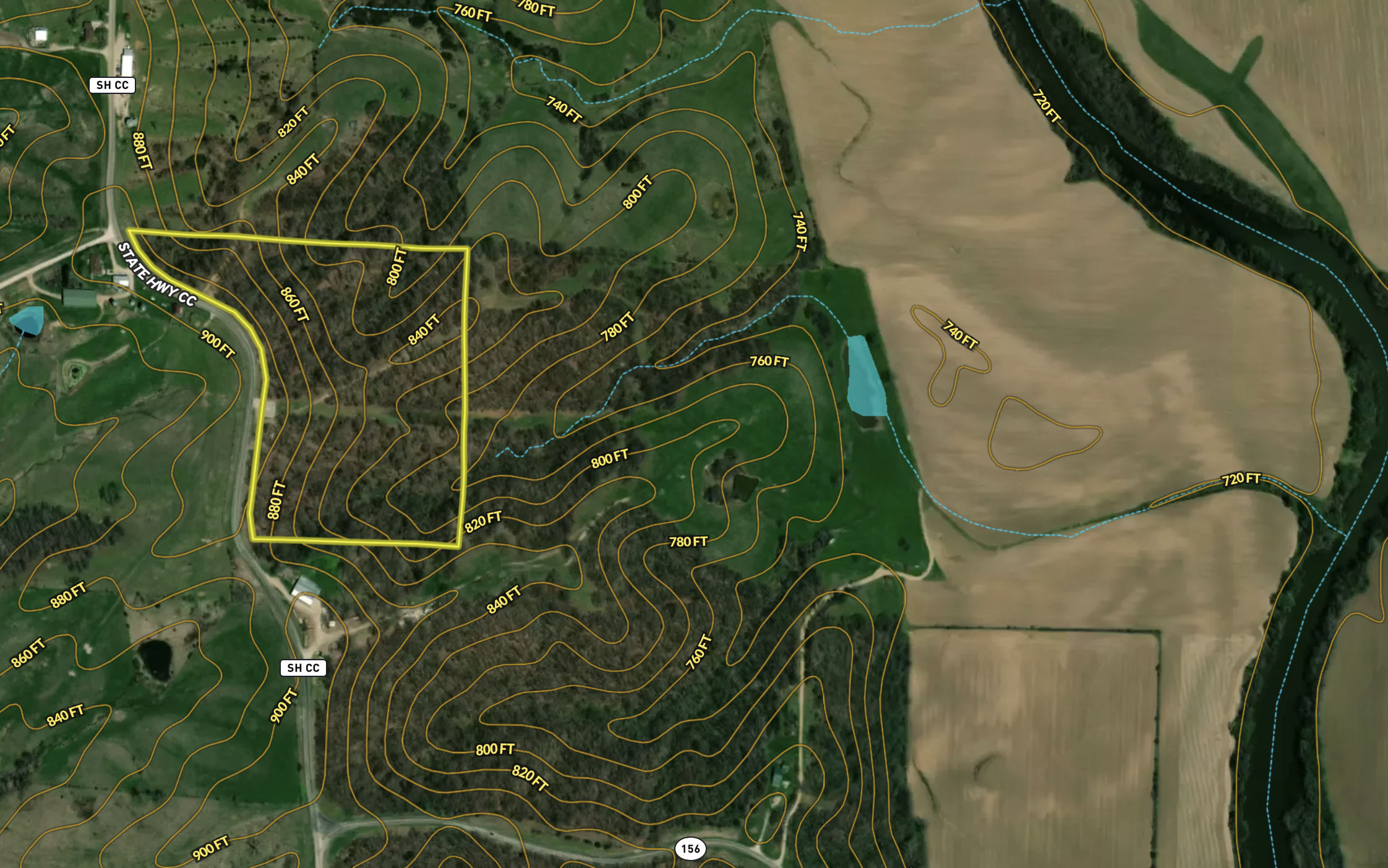 Small hunting tract with timber, highway road frontage, and strong whitetail population. This tract sits at high elevation overlooking the Chariton River bottoms.