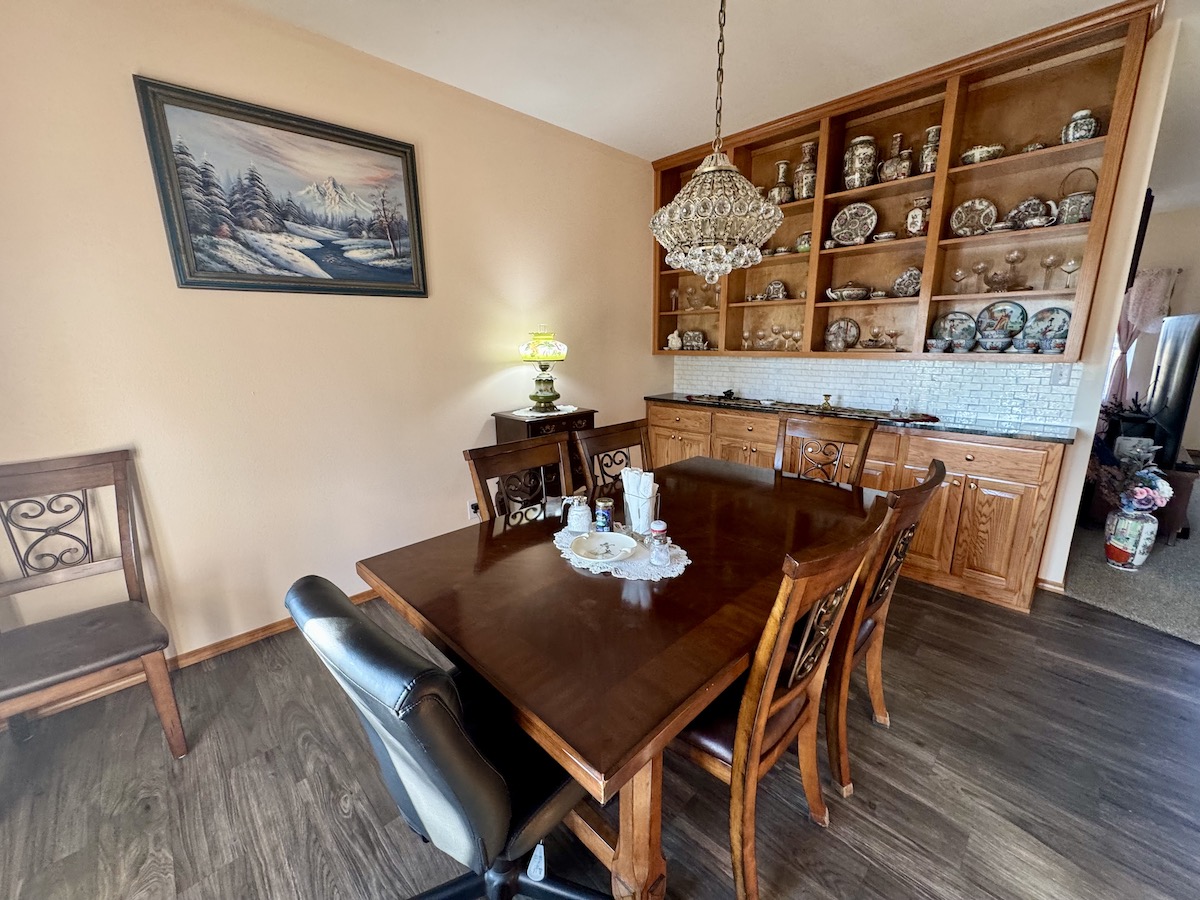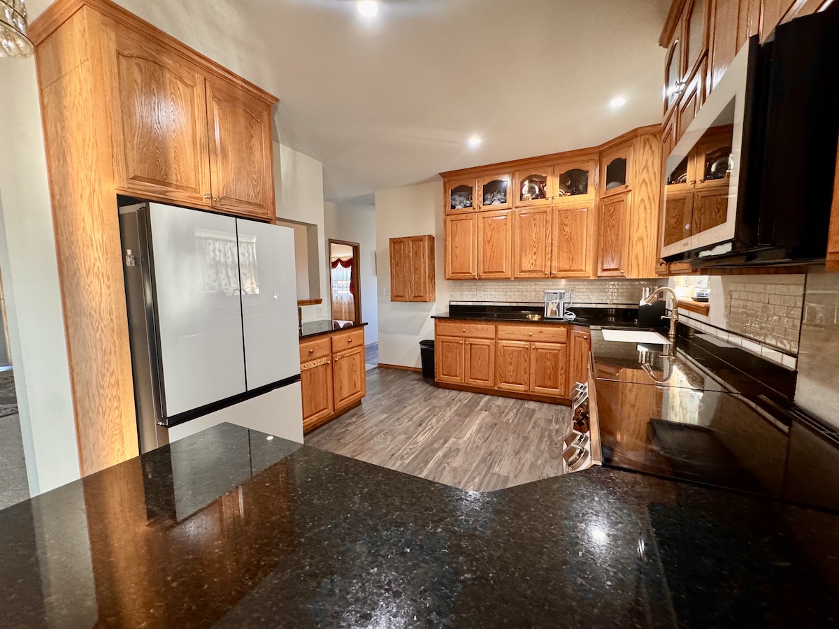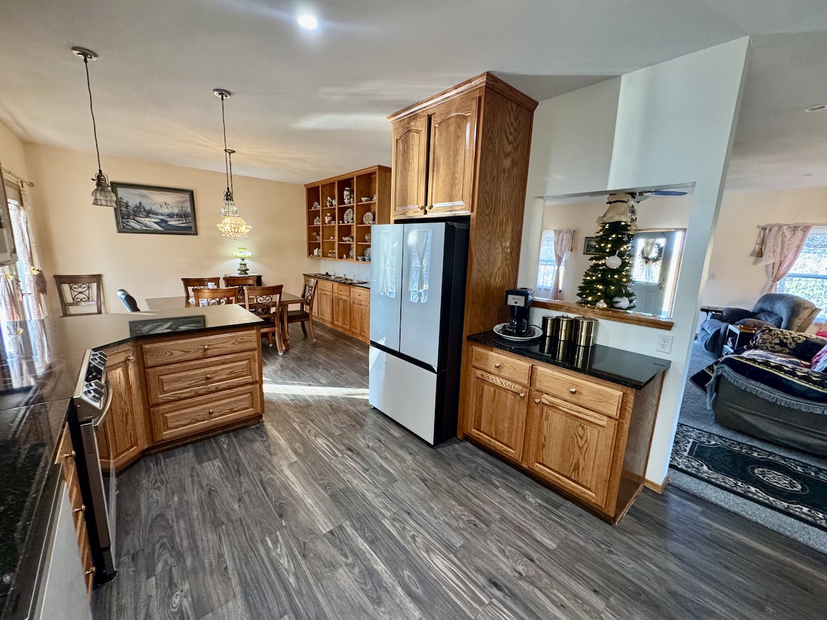 - Spacious kitchen with custom cabinets and dining room