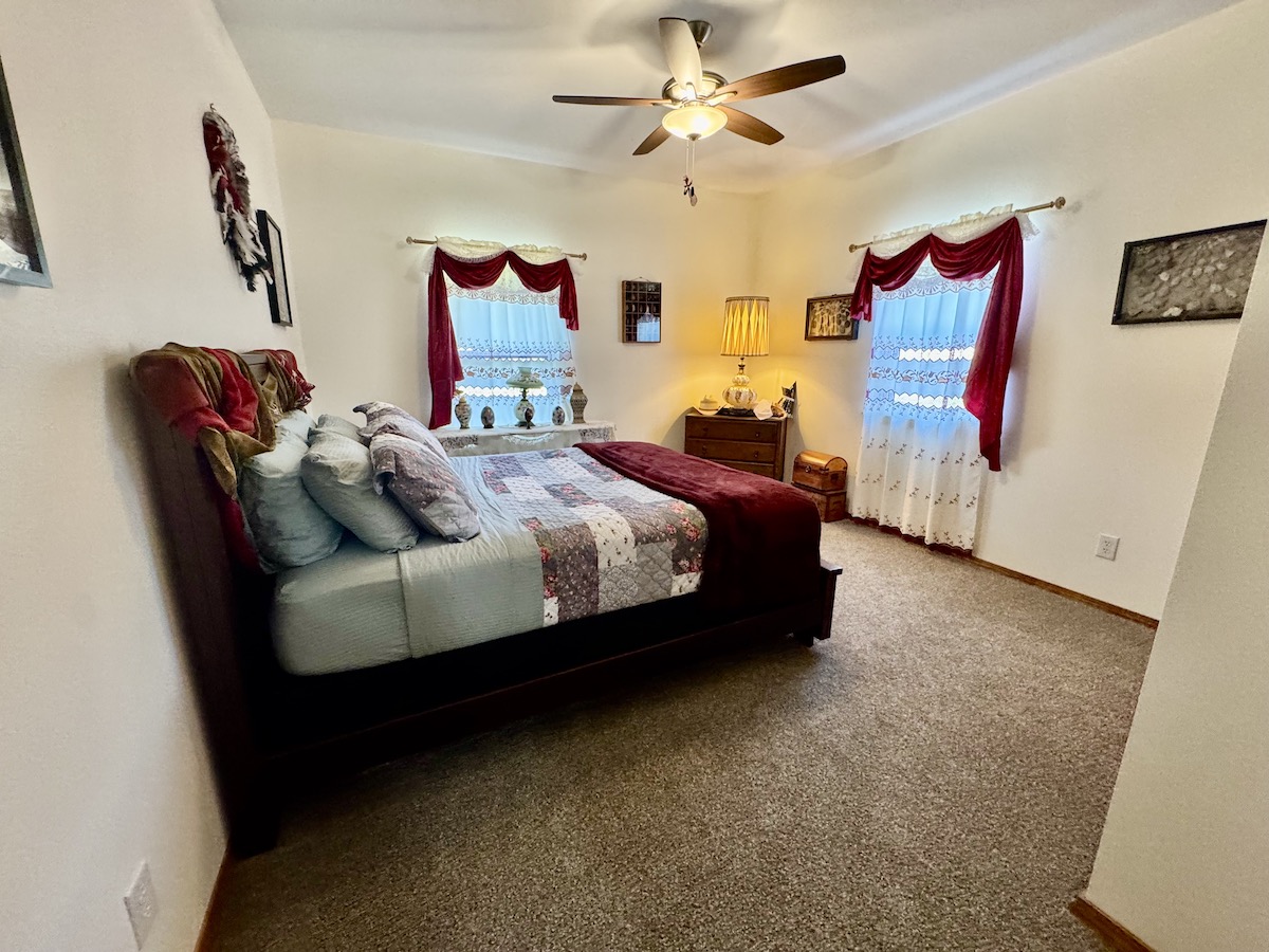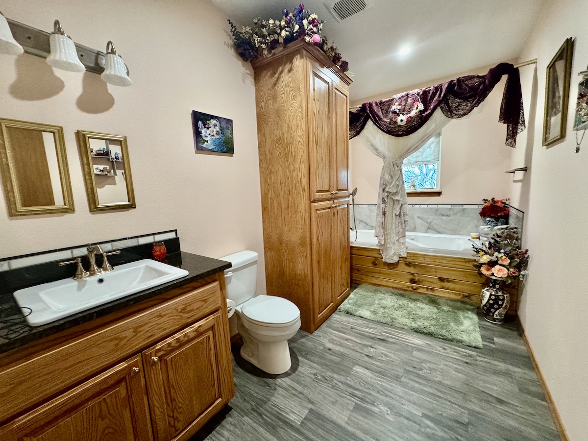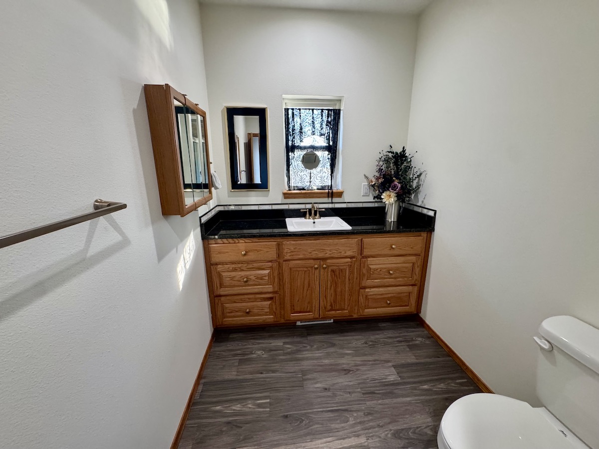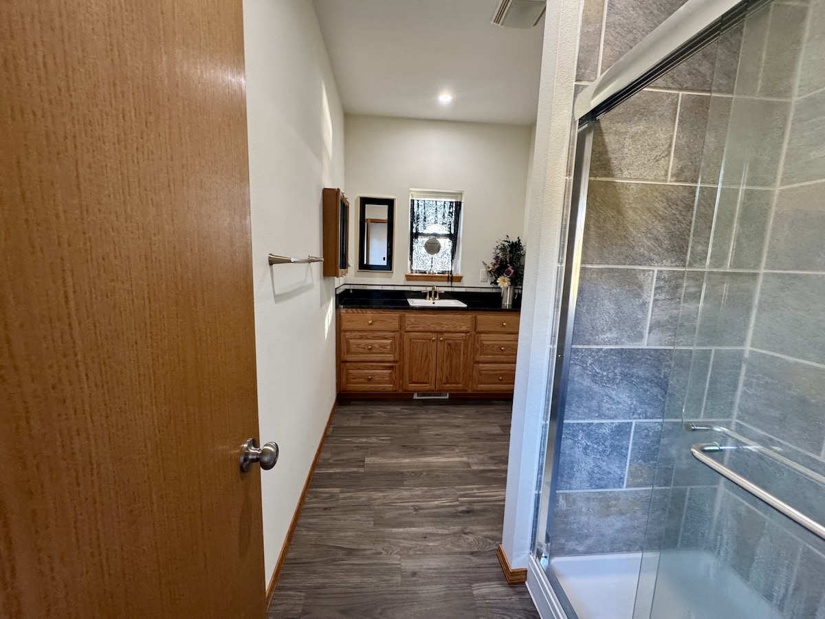 At the heart of the ranch sits a beautiful custom-built home positioned to overlook the land and take full advantage of breathtaking panoramic views. The residence offers a warm and inviting open floor plan anchored by a wood stove, creating a cozy yet functional living space. The home features two bedrooms and two full bathrooms, making it ideal as a primary residence, weekend retreat, or hunting lodge. A spacious kitchen with custom cabinetry flows seamlessly into the dining area, perfect for hosting family and guests. Step outside onto the back deck and enjoy tranquil views of the pond and surrounding park-like setting, complete with a garden area that enhances the property’s self-sufficiency and charm.
