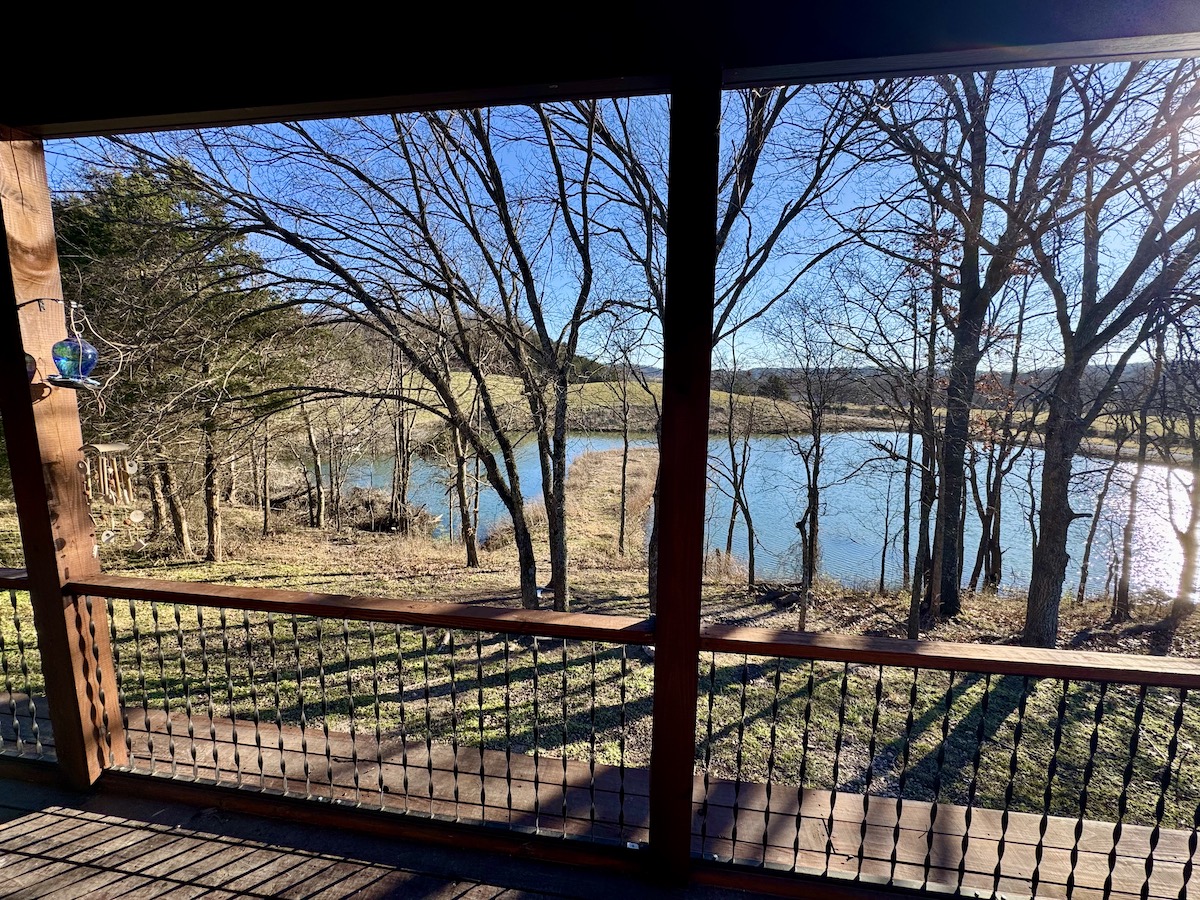 - Back deck overlooking large 1.5 acre stocked pond
