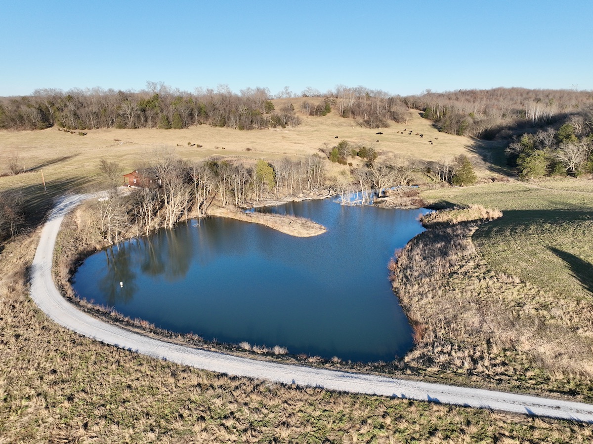 The property is fully fenced and cross-fenced, making it exceptionally well suited for cattle or livestock operations. A thoughtful combination of open pasture and mature hardwood timber provides both productive grazing land and excellent wildlife habitat. Well-maintained internal roads and trails allow easy access throughout the ranch, enhancing both agricultural efficiency and recreational enjoyment. Multiple ponds are scattered across the property, including a stunning 1.5-acre stocked pond, complemented by multiple water lines that have been run to support livestock and land management needs.