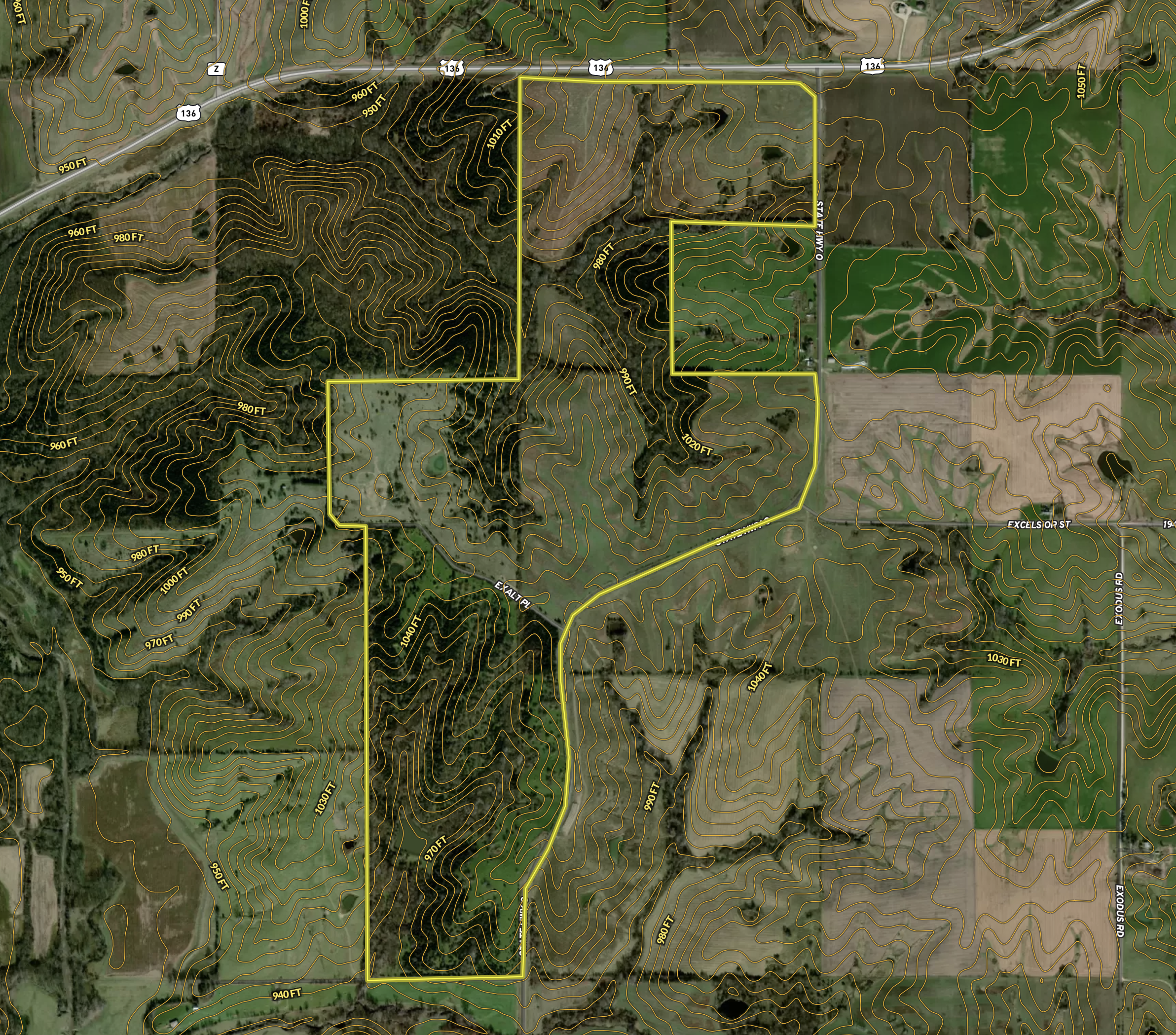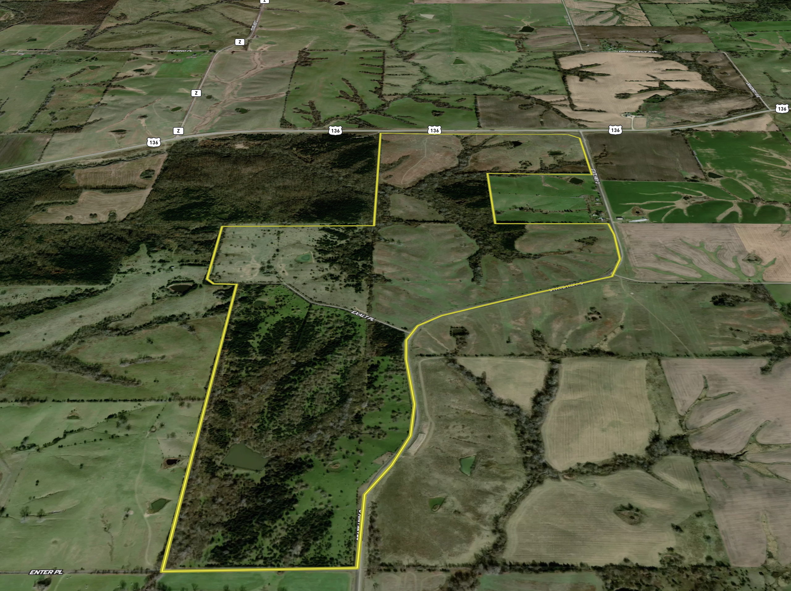 - Great access; northern end of the farm is accessed off of Highway 136, the east side off of State Highway O, and county road access from the south, key feature to this farm for wind considerations