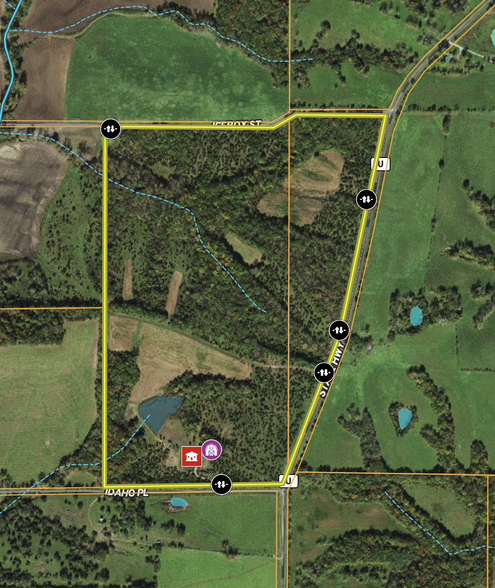 Relax and Hunt in style: that's what you can expect from this beautiful country home and acreage in Missouri. This property is fully turn-key with a 1422 sqft home with a wrap-around covered porch overlooking a stocked pond with all appliances, furnishings, beds with much more included. The design has been well thought out with 2 bedrooms, 2.5 bathrooms, vaulted ceilings, a brick fireplace and an upstairs loft area. All these features help make this place feel like home away from home while telling stories of the hunt and making memories with friends and family. The home has an attached 2-car garage, a detached 30x40 barn with electric openers and concrete floor and a center loft above for storage. The property has been managed for 5.5+-year-old deer over the past several years and has had several nice bucks harvested on it. There are (5) new Stump 4 Banks blinds set up and overlooking multiple established food plots with a mix of Alfalfa, brassicas, clover and corn to give the local wildlife a variety of options. Current owners have a very low-pressure approach and use (12) Reconyx cellular cameras with solar panels set up to help monitor the property year-round and to keep good deer history. The property has a very detailed management plan in place put together by Land and Legacy to help maximize every acre of this property for the purpose of holding and growing big mature deer. For more questions or to schedule your personal showing, contact listing agents.