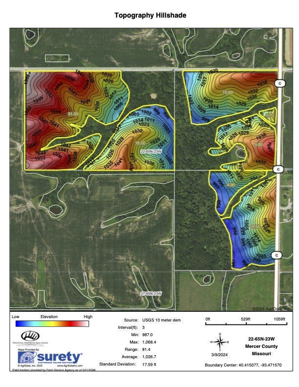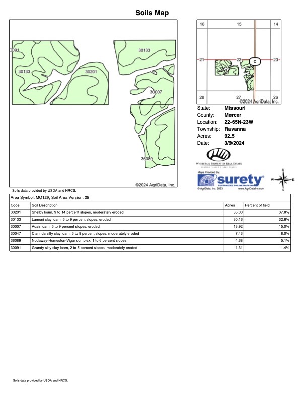 Mercer County, Missouri, has always been highly sought after by hunters and outdoor enthusiasts. Here is a property that will register with multiple buyers as it has great income, great hunting, a newer trailer house, and an outbuilding for equipment storage. This parcel consists of 83.9+/- tillable acres under a cash rent agreement for 2024 and 2025 for $10,487.50, and the remainder of the farm is made up of meandering draws and a centrally located bedding block of timber and cover for the wildlife. The current owner has owned this property for several years and has strictly managed it for an older age structure while harvesting a couple great bucks off of it, including a dandy last season with a bow (check out trail cam pics). Multiple secluded food plot locations around the farm could be tucked in nice and tight to destination bedding to help encourage daylight walkers to make that one last mistake during daylight hours and present a great shot opportunity. There are 3 box blinds set in productive locations and a couple treestands that will also convey with the farm sale to maximize comfort and your hunting experience. Speaking of comfort, up along Hwy C is a 2018 trailer home with a well-maintained yard and covered back deck. The home has 3 bedrooms and 2 baths with an open living/kitchen area to sit, relax and tell stories with family and friends while enjoying the farm and the great outdoors. Home will convey with all beds, furnishings and appliances to help make this as easy and enjoyable as possible. All utilities are on site, including high-speed fiber internet, in case you need to work from home while away. Great access to the farm from the east and the north to help slip in and out, keeping pressure on the farm to a minimum. For any questions or to schedule showings, please contact listing agents Jeff Propst and Stephen Stockman.