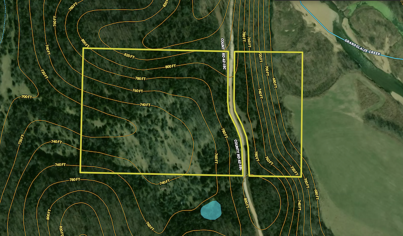 - Overlooks bottom ground along Grand Glaize Creek