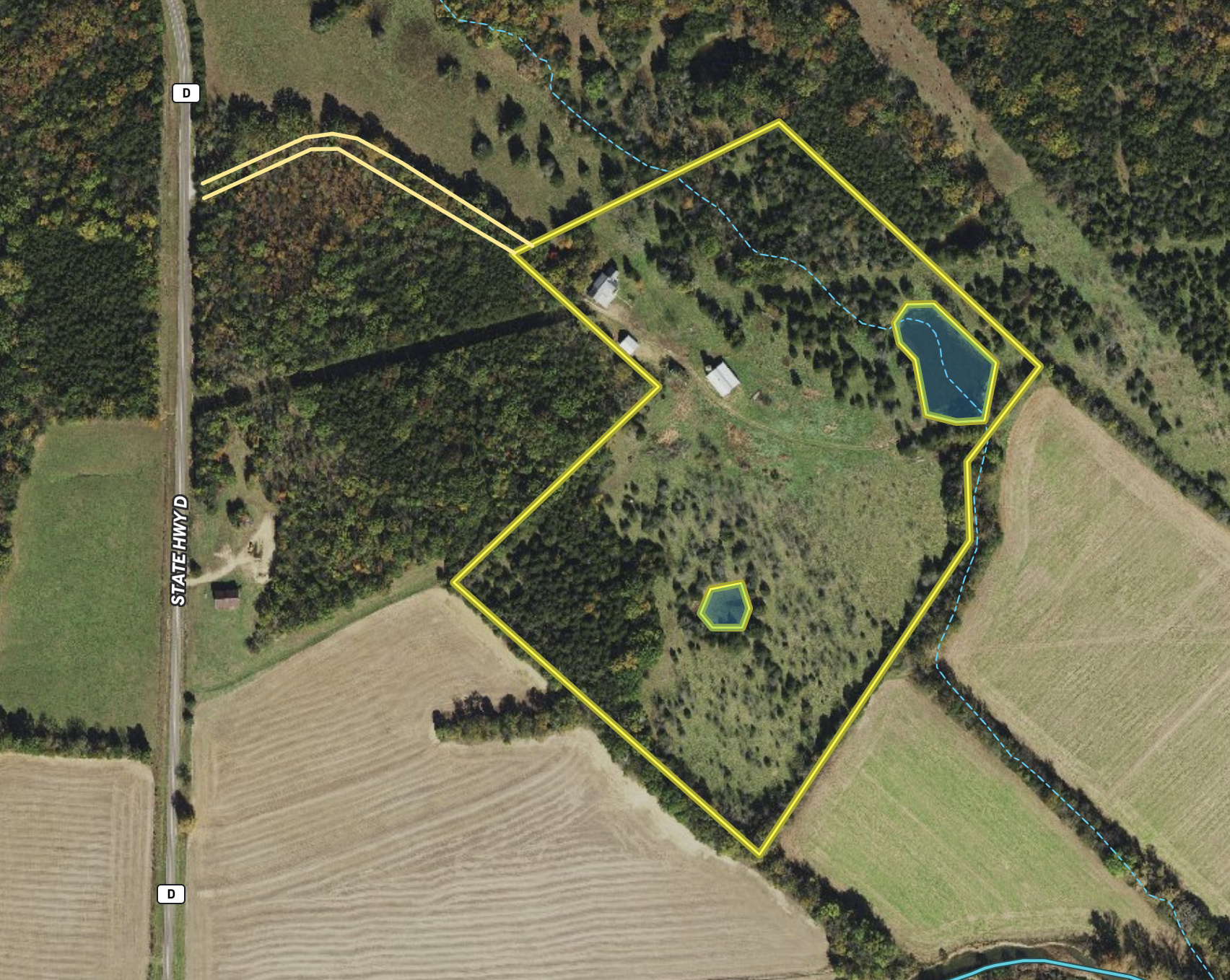 This pioneer farm has a heritage of being called “home” to generations since 1882 when the original portion of the house was raised. Located on rolling hills in the heart of Missouri just 8 miles from the Missouri River, the farm has been loved, tended, and worked by several families throughout time. The most recent span being 51 years and now you have the opportunity to continue that legacy by adding to its rich history. Upon entering the home, you are greeted by the beautiful original staircase leading upstairs. Flanking it on both sides are 2 separate living areas, one of which displays the original hardwood floors. A wonderful sun filled family area with a natural gas fireplace and full bath was added to the home, this room leads to the large kitchen with wood heating stove and dining area. Another full bath and utility room are located just outside of the kitchen. Upstairs holds the primary bedroom with a half bath and two additional bedrooms, one of which has a very large walk-in closet. There is also another full bath, through which access is gained to a large bonus space, which if finished could be an additional bedroom. HVAC is supplied by a geothermal heating unit, central electric air, and natural gas for appliances and fireplace. Outbuildings include a very nice 28 x 30 shop with concrete floor and large storage area upstairs and a big 30 X 56 hay barn with a 20 X 56 lean-to that is ideal for livestock or horses. One of the rare attributes of this farm acreage is its 2 ponds, the largest of which is 1 acre +/-. These are an excellent source of water for pastured animals as well as the very active wildlife populations, including whitetails and turkeys. Hardwoods and softwoods make up the 9+/- acres of timber and fence line rows, providing bedding areas and shelter. The proximity to neighboring row crop grounds also provide easy forage to help hold the deer population. This beautiful small acreage farm provides everything, a home, pasture, ponds, outbuildings, hunting, and a wonderful place to start making memories. If you have any questions, feel free to give me a call at any time.