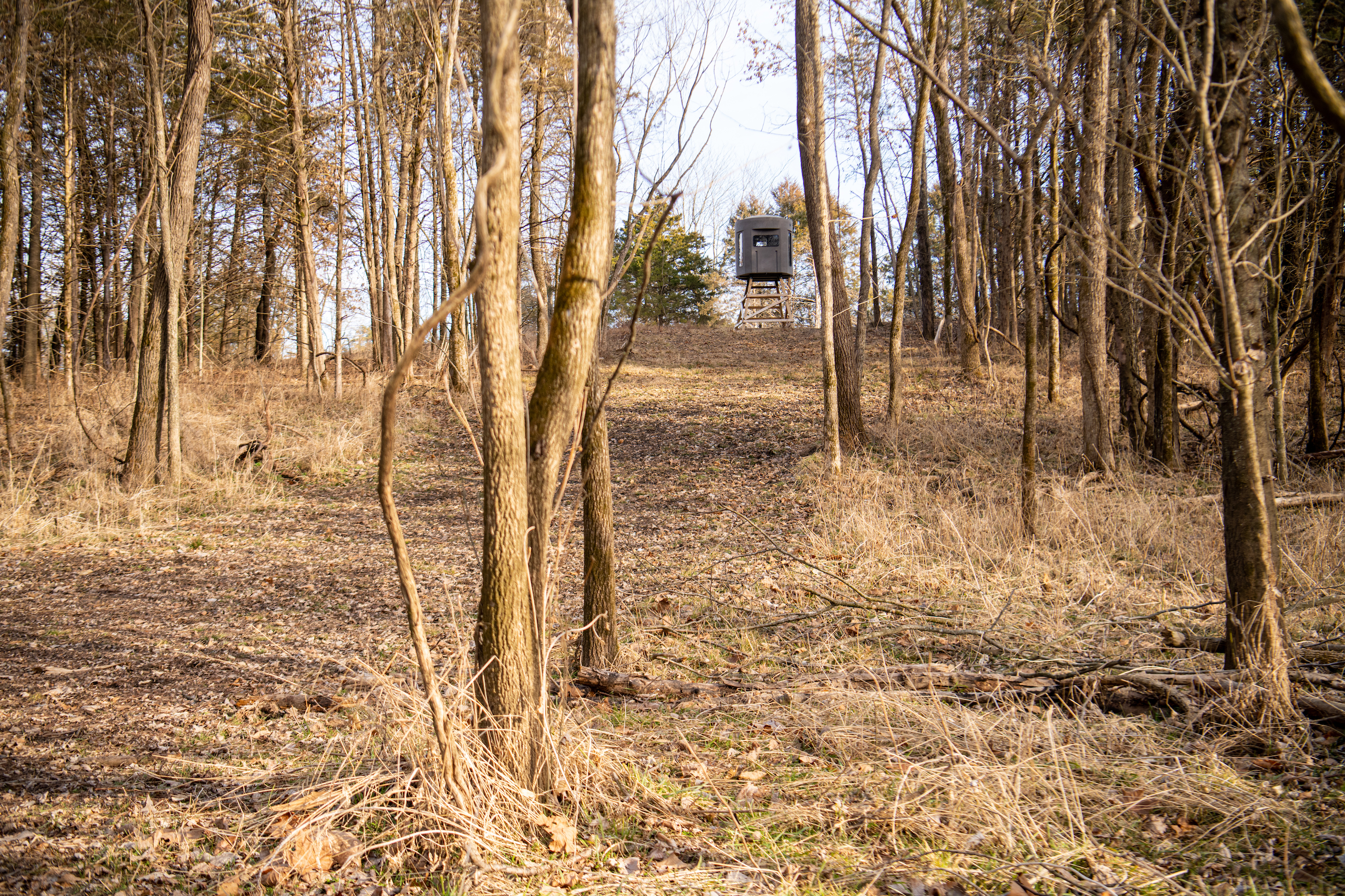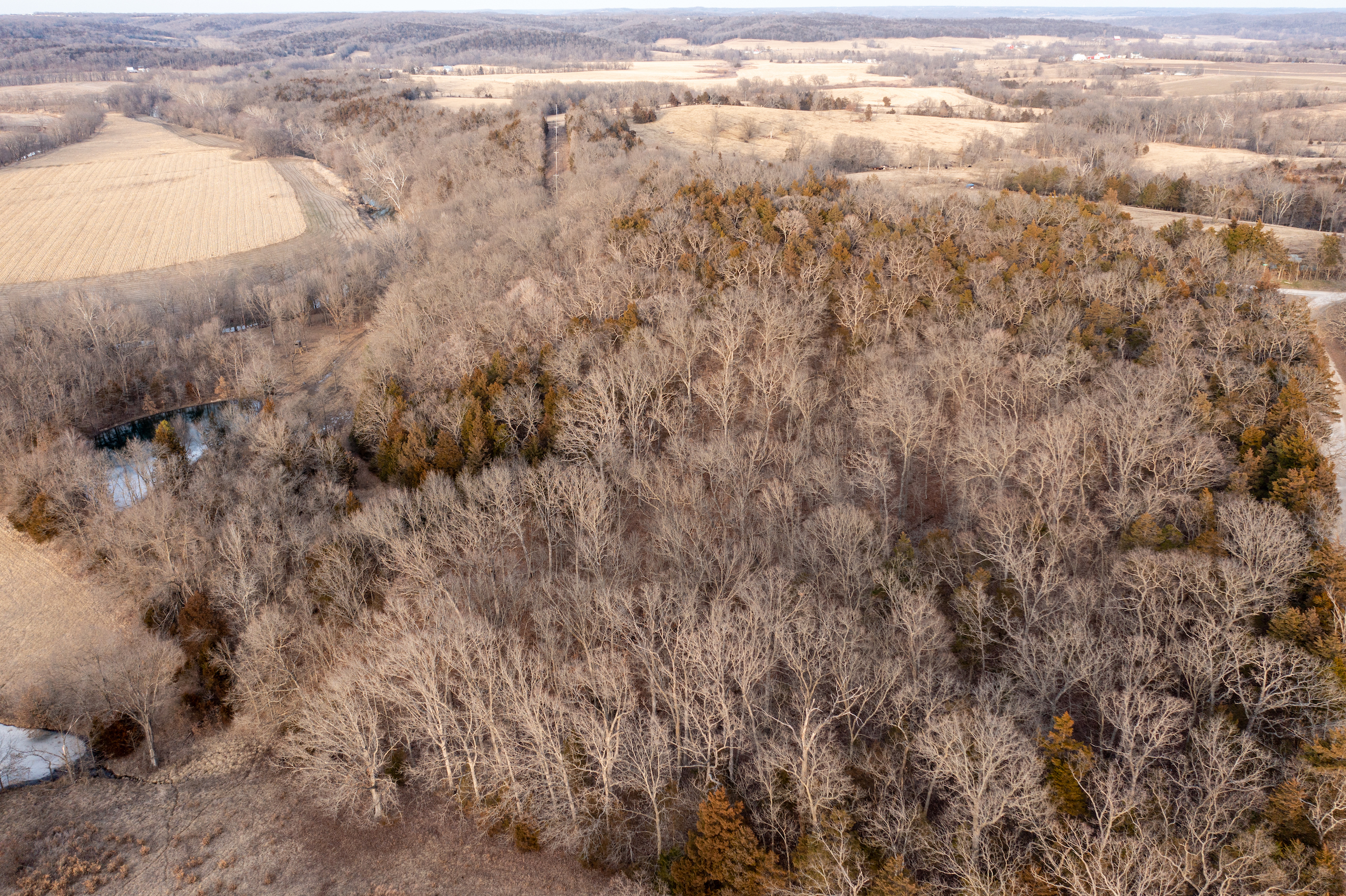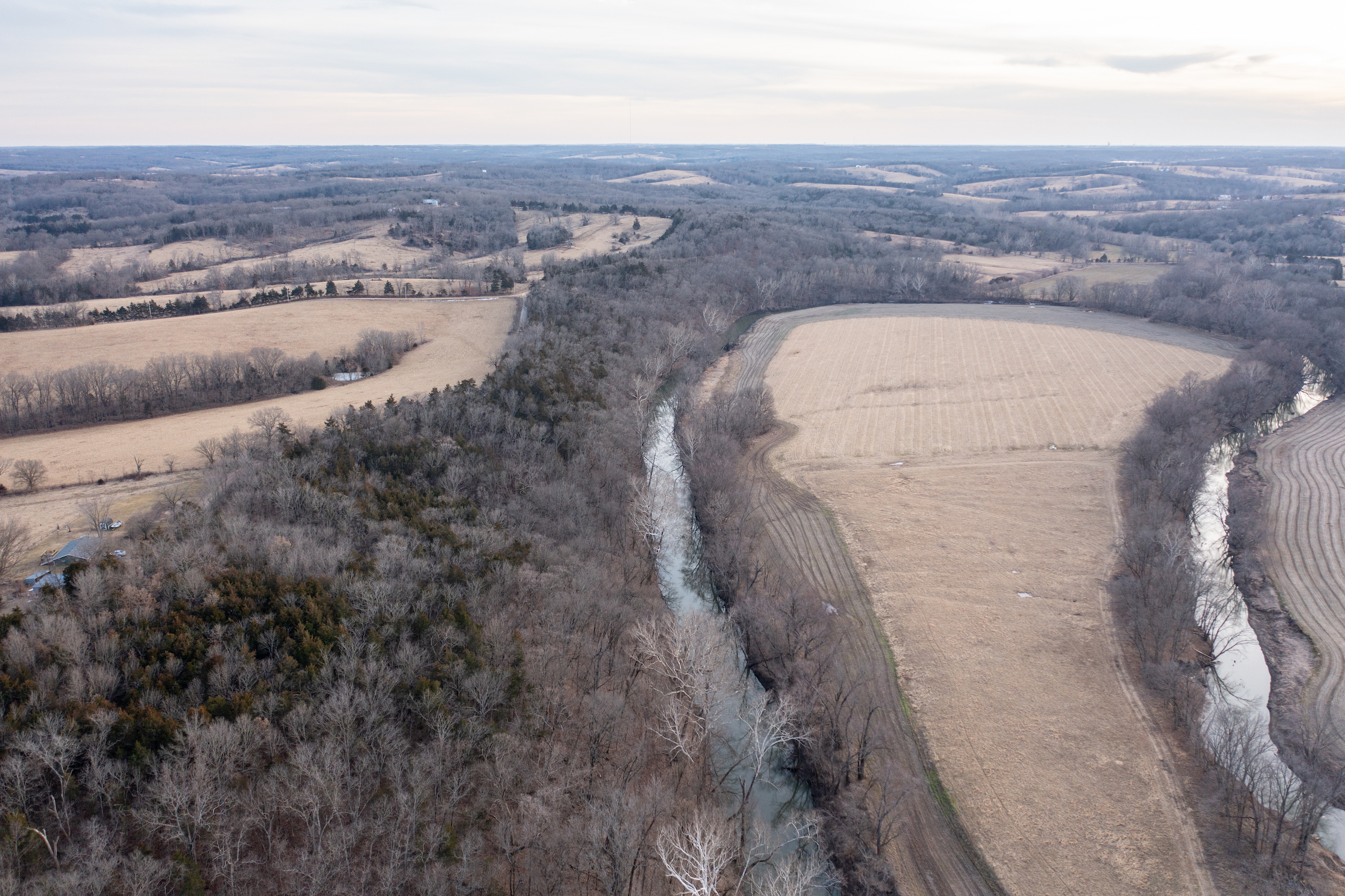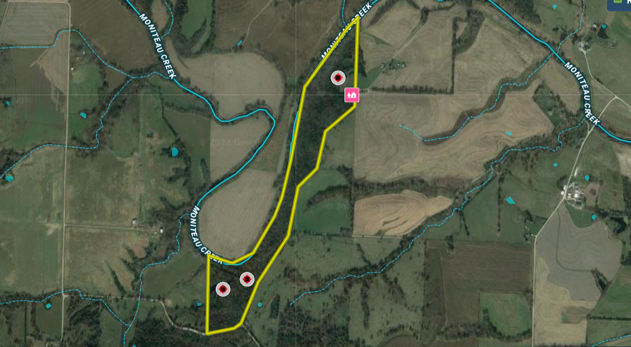 If you’re looking for a complete package for hunting, relaxing, or just a weekend getaway in the outdoors, this is the property. The amount of wildlife on this tract is truly incredible. The entire western border is made up of Moniteau Creek, with the eastern border being the county road. The endless food sources in the area’s agriculture fields and the intense bedding area of this property make it a magnet for deer and turkeys. The turkeys roost on the ridge and the bucks cruise the creek while the rut features a parade of shooters. The southwestern facing ridge thick with cover provides perfect bedding throughout the year, especially in the cold fall and winter days of the season. The road along the ridge top on the east side of the property provides great access to the numerous stand sites and food plots. You can enter the stands and blinds undetected with the prevailing westerly winds. Overlooking the food plots and trails, you will find three new Banks tower blinds in strategic locations. There is also a great trail system running almost the entire length of the property along the creek. To top it off, a beautiful fully furnished 2 bedroom, 1 bath cabin sits overlooking the creek bottom, food plots and beautiful rolling Missouri landscape. The cabin is very secluded but set up to not disrupt the hunting on the property. The cabin is also ready to spend the night fully furnished with all appliances, washer and dryer, 3 beds, barstools and a 75” flat screen TV. The wood stove provides a great atmosphere and warm heat in addition to the central heat and air system. Also included in the sale is a 20-foot container for secure storage of tools and equipment. This property is really a must-see, so please call soon for your private tour.