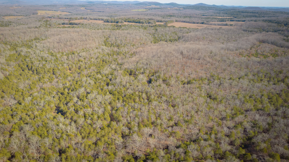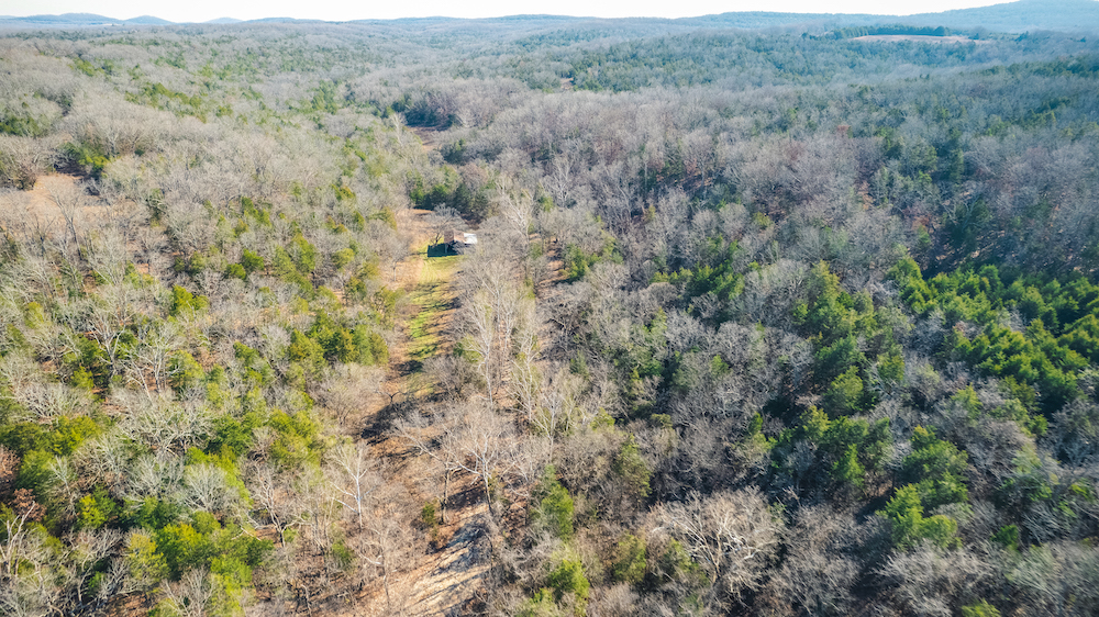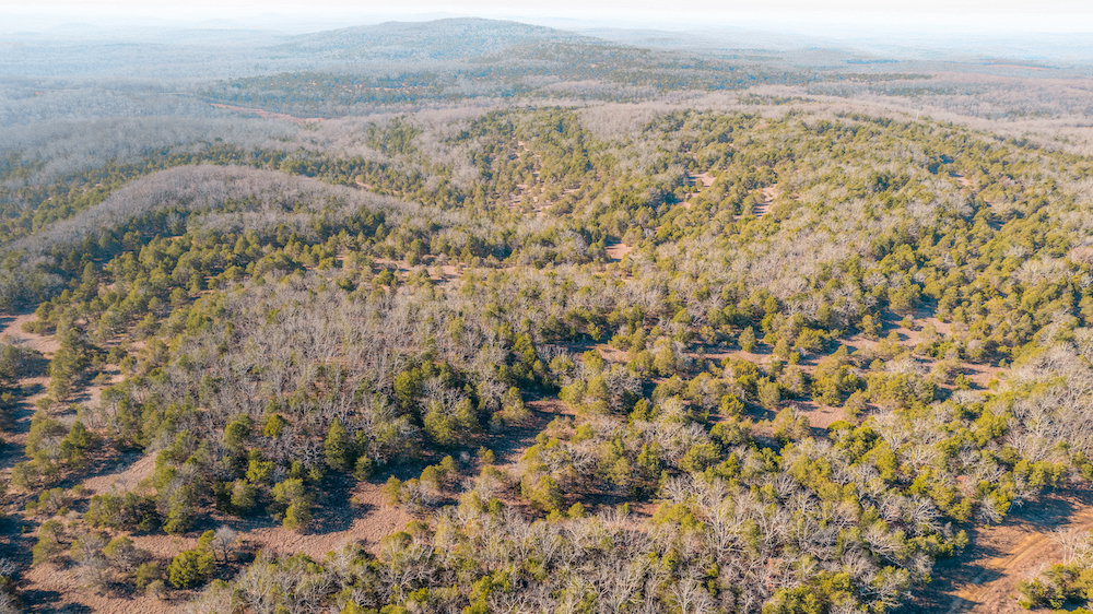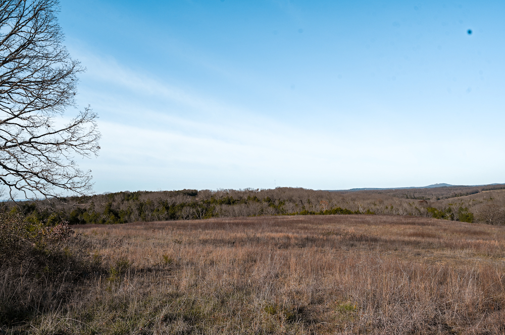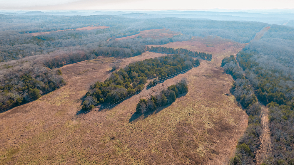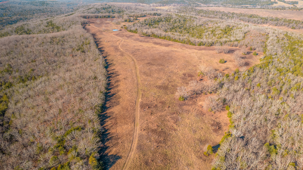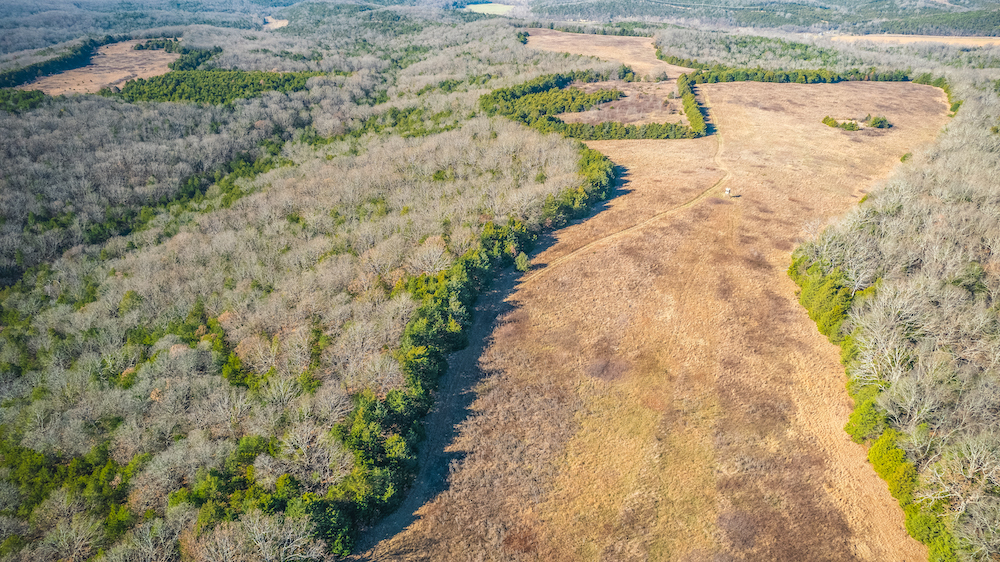 The land showcases classic Ozark character with massive ridges rolling into sweeping valleys, offering dramatic elevation changes, long-range views, and a true sense of openness. Large open areas are scattered throughout the ranch, allowing flexibility for pasture, riding areas, camping locations, or wildlife habitat improvements, while timbered ridges and draws create natural structure and diversity.