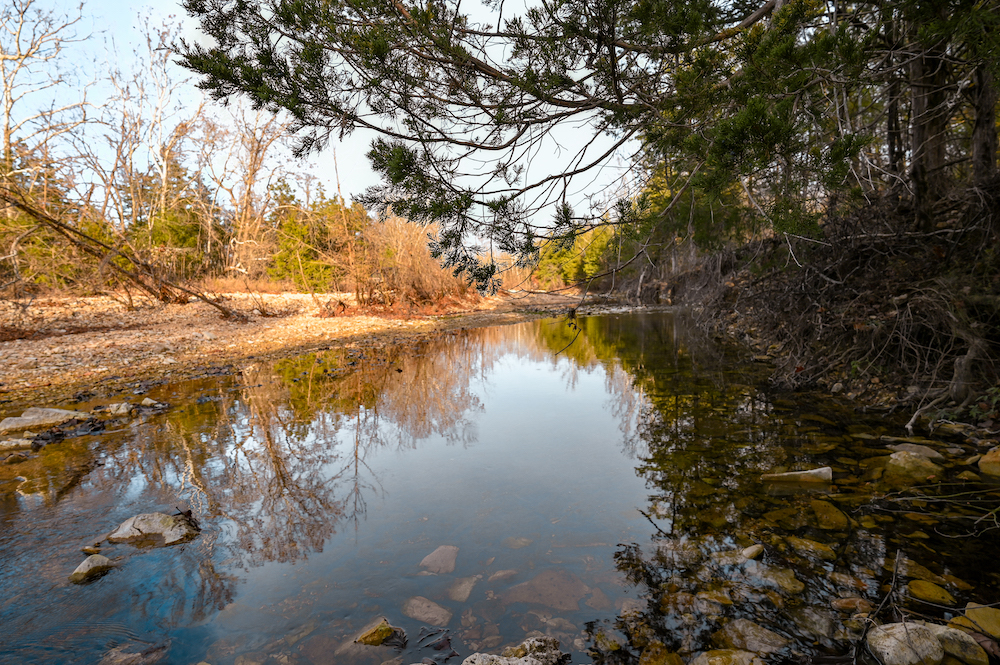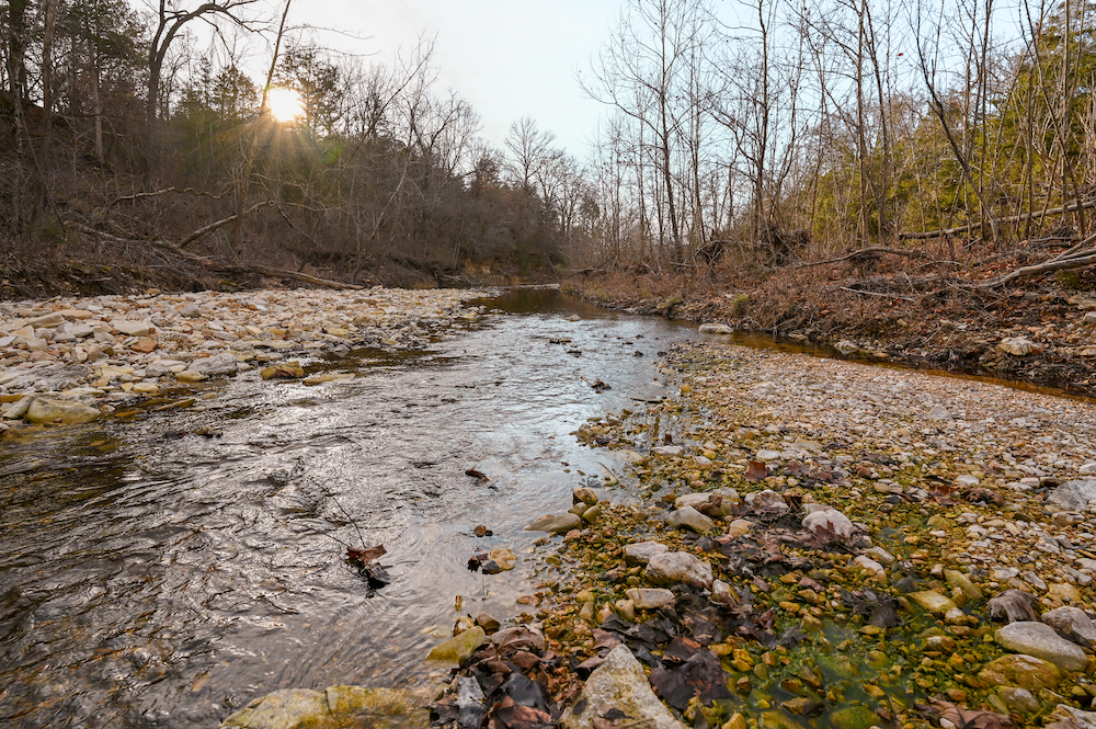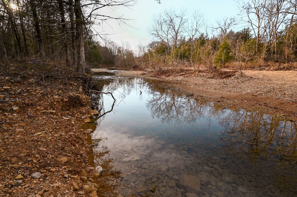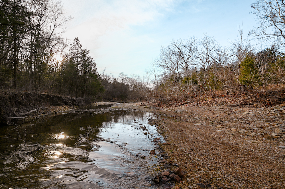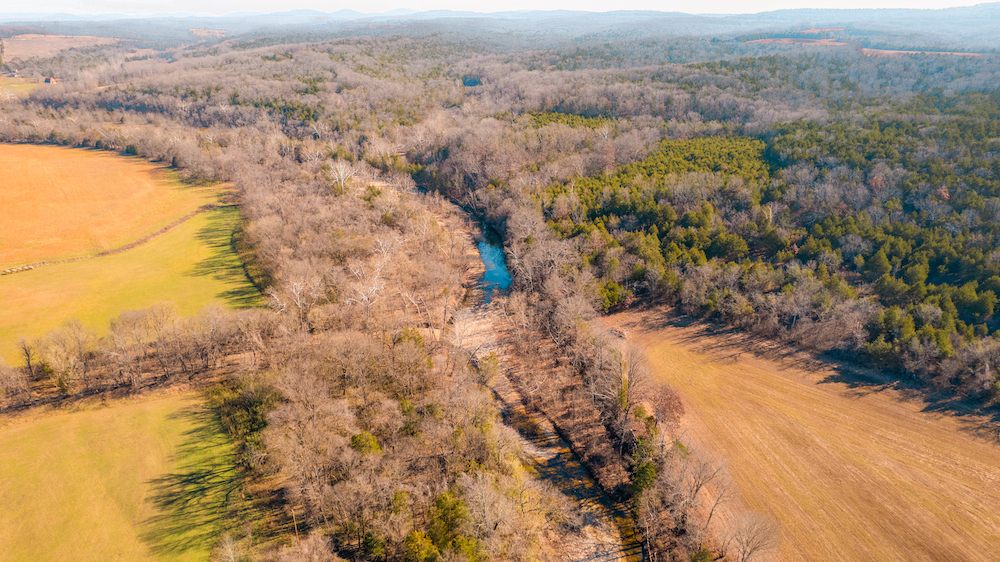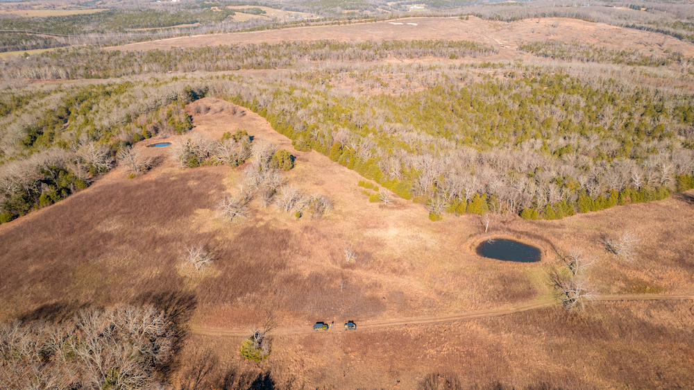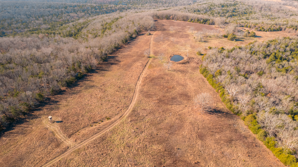 Water features anchor the ranch. Multiple ponds are distributed across the property, along with approximately 0.4 miles of Barren Fork live water creek, supporting wildlife and enhancing the land’s natural balance. These resources reinforce the guiding principle — caring for the land today while preserving opportunity for future generations.