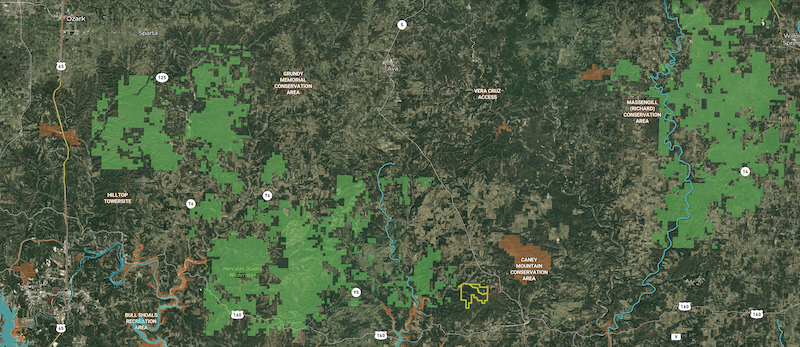 Positioned in a highly sought-after section of the Missouri Ozarks, Forvis Ranch is located near Bull Shoals Lake, North Fork Lake, the White River, and the renowned Glade Top Trail, in the Mark Twain National Forest. This location places the ranch at the center of some of southern Missouri’s most respected recreational landscapes while maintaining privacy and scale rarely found in single-ownership properties.