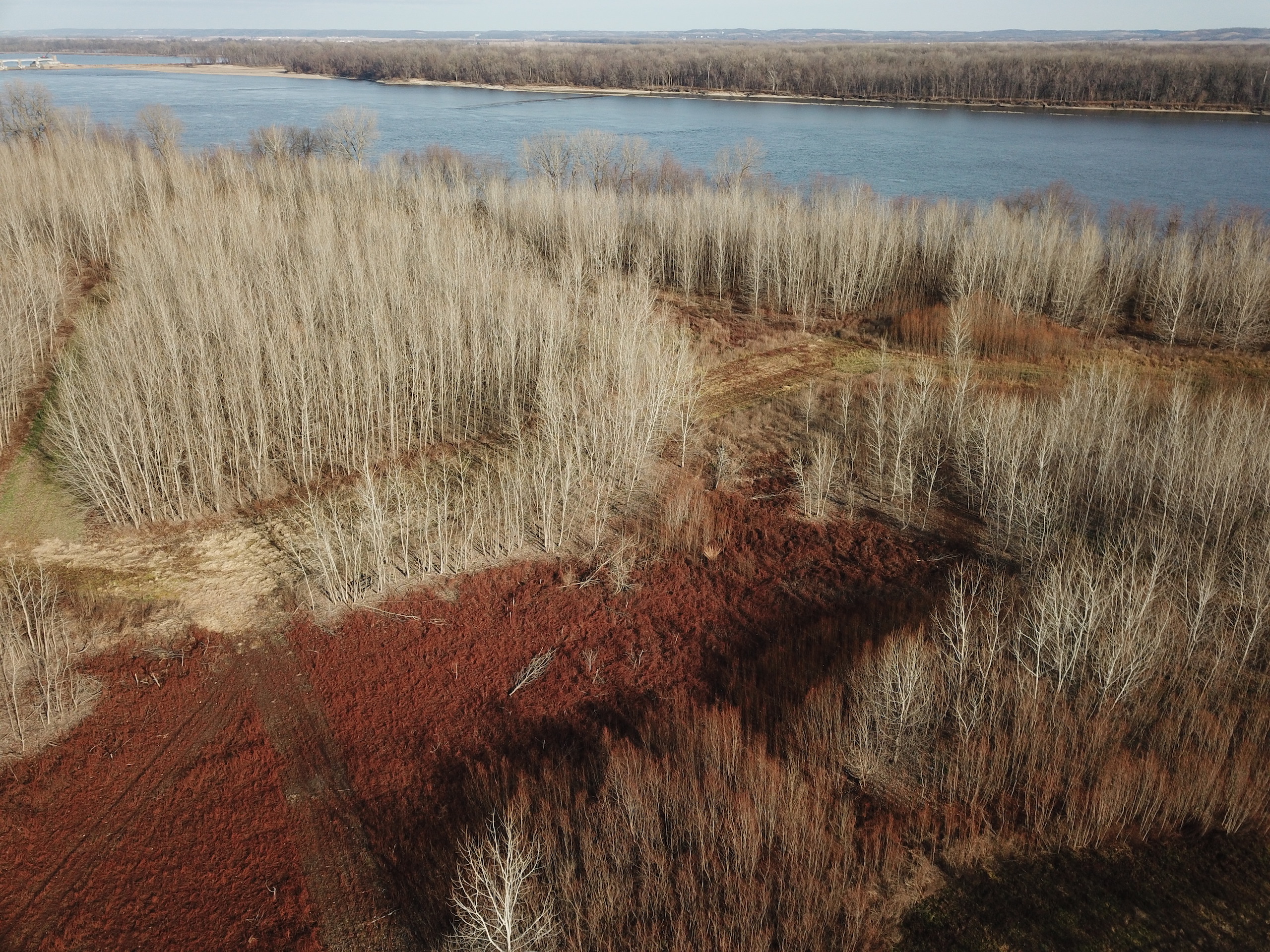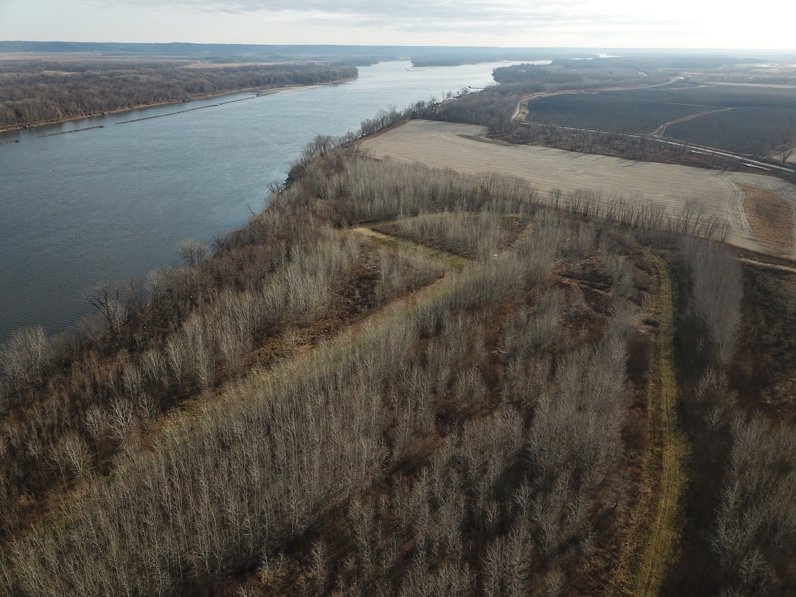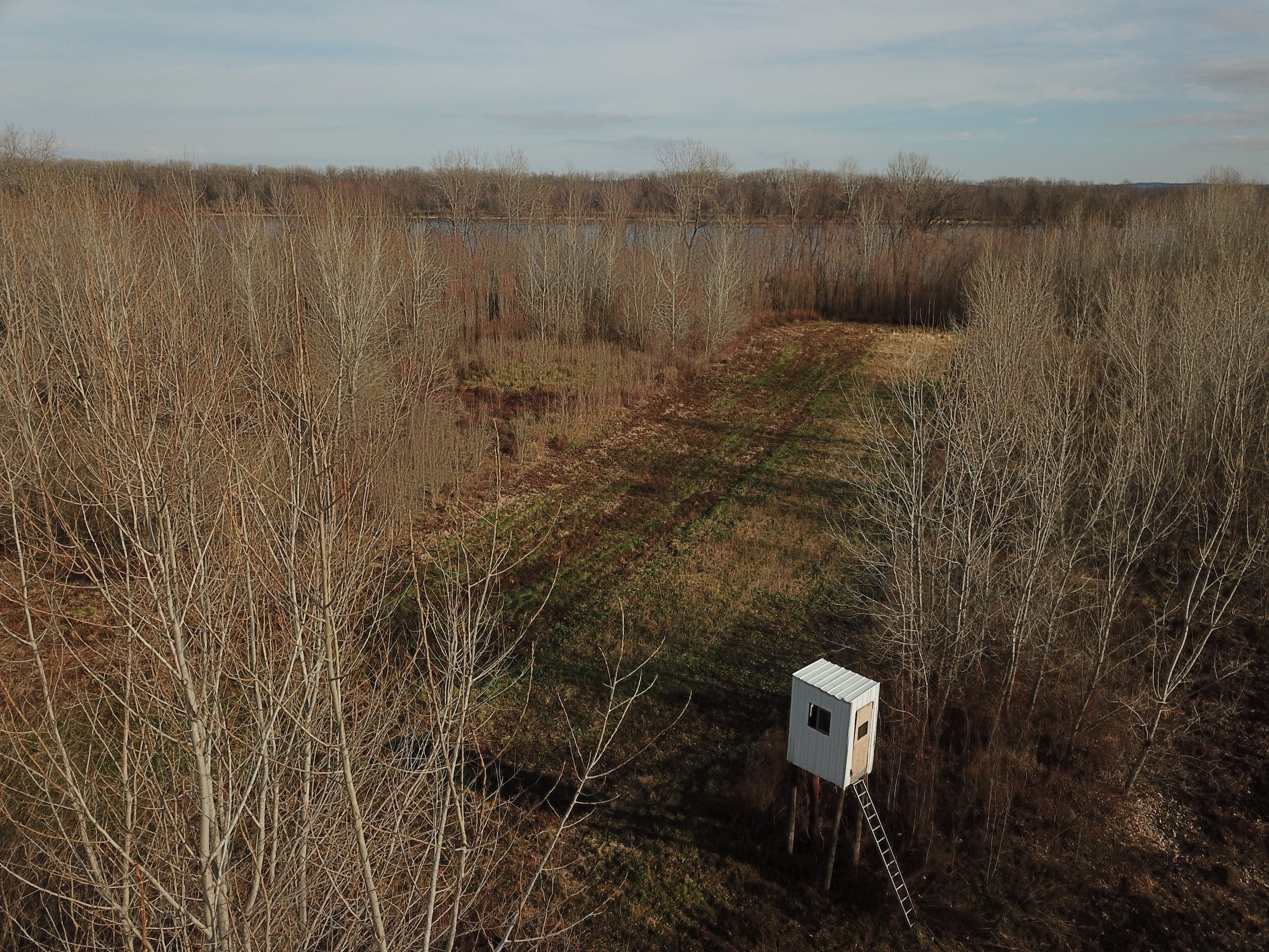 Offered here is a property that offers excellent deer and waterfowl hunting opportunities. Most of the property is under a wetlands reserve program and has been managed for whitetail deer for several decades. This river bottom property has over 3,500 feet of river frontage and more than 2 miles of a mowed road/trail system that runs throughout the property. This well-maintained road/trail system provides great access to numerous large food plots and open shooting lanes. A very nice elevated box blind overlooks a long narrow food plot surrounded by thick cover which currently has a good stand of clover and radishes. River bottom bucks love the heavy cover on this property finding refuge as they travel up and down the river’s edge making their way in and out of the highly productive neighboring crop fields. In just a short tour of the property, you will see an abundance of trails, scrapes and rubs; clear evidence that there are a lot of whitetail deer spending a lot of time on this property. This property sits just a little higher elevation than other properties south of it, making it some of the last to flood during high water, but when it does it can make for some very good waterfowl hunting as well. If you would like to own a property that has the potential of producing some large river bottom whitetails and also offers waterfowl hunting opportunities, please give me a call.