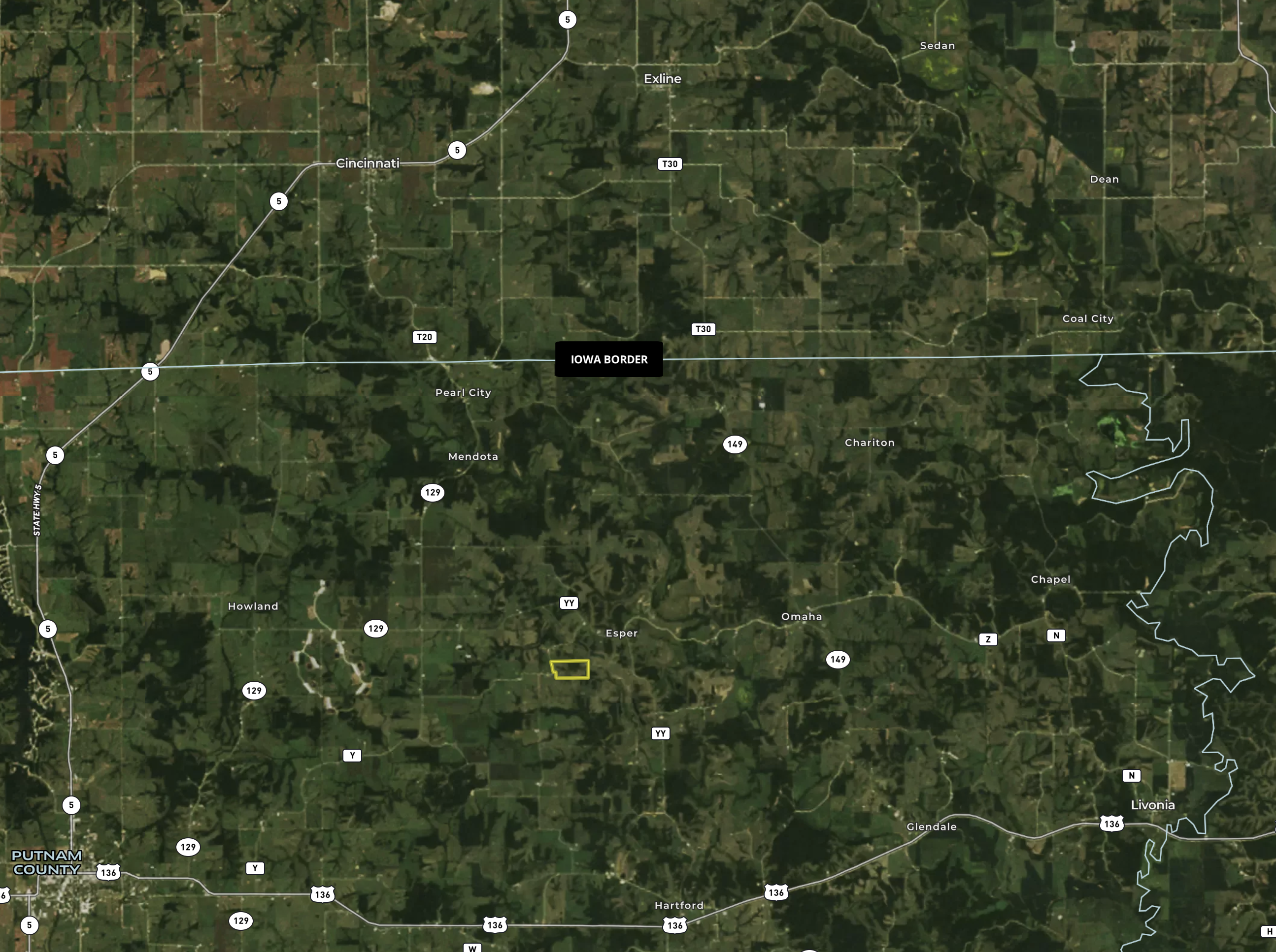 - Property located approximately 4.5 miles south of the Iowa state line; 4 hours northwest of St Louis area; 3 hours northeast of KC area; 2.5 hours north of Columbia area