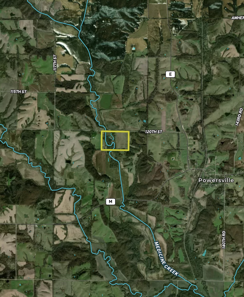 If you are in the market for a smaller recreational hunting farm in Northern Missouri close to the Iowa line, then you will want to see this great property. Located just Northwest of the town of Powersville in a great managed area of the county that produces great bucks year in and year out lies this 59.5 surveyed acre parcel. The property consists of 26.73 acres of FSA bottom ground tillable currently rented for $100/acre to a local farmer, with the remaining 32.77 acres in timber with Medicine Creek meandering through it from North to South. Along the creek, you will find a mix of mature marketable timber, including cottonwoods, oaks, hickory and some nice-sized walnut trees that provide great cover and a classic travel corridor for rutting bucks in the fall. With the property being surrounded by mostly larger landowner blocks managing for QDM, the current owners have enjoyed great deer and turkey hunting over the years and have also harvested some great buck. If this property sounds like something you have been looking for, reach out to listing agents Jeff Propst and Stephen Stockman to visit or to set up your personal showing.