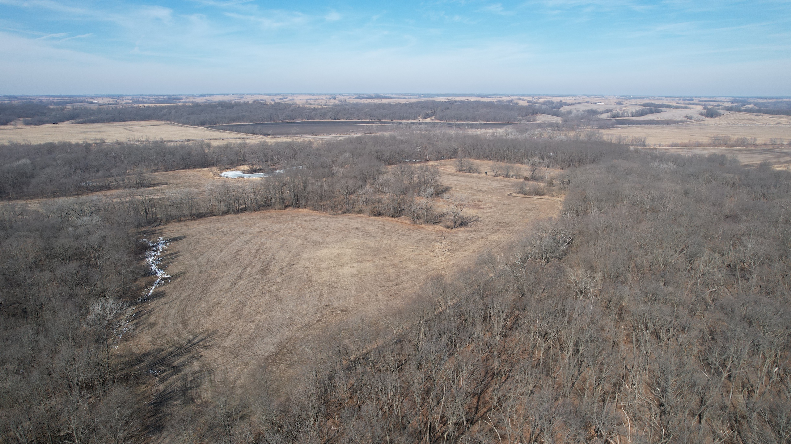 Here is one of the best all-around income-producing trophy whitetail hunting farms you will find on the market in Northern Missouri today. Located just south of the small town of Lucerne on Medicine Creek, this property features everything you could ask for in a farm that provides outstanding deer and turkey hunting as well as a nice income stream from the tillable acres. The sign of the farm is incredible; the beat down trails, rubs and scrapes and tracks everywhere tell the story. This place is loaded with deer and turkeys. Rolling topography of hardwood timber, agricultural fields, creek bottom, thickets and food plots provide all the components that make up a great farm and this one simply has it all. Great access off of a hard surface road to the east leads to a brand new Morton lodge. This “Shouse” is in mint condition and features 4 bedrooms, 2 baths and an open kitchen and living area. The building offers a scenic view of the countryside. Farms like this one are incredibly hard to find; great hunting, income, and a super nice place to stay or live full time is all here. Call the listing agent for more information or to set up a private showing!