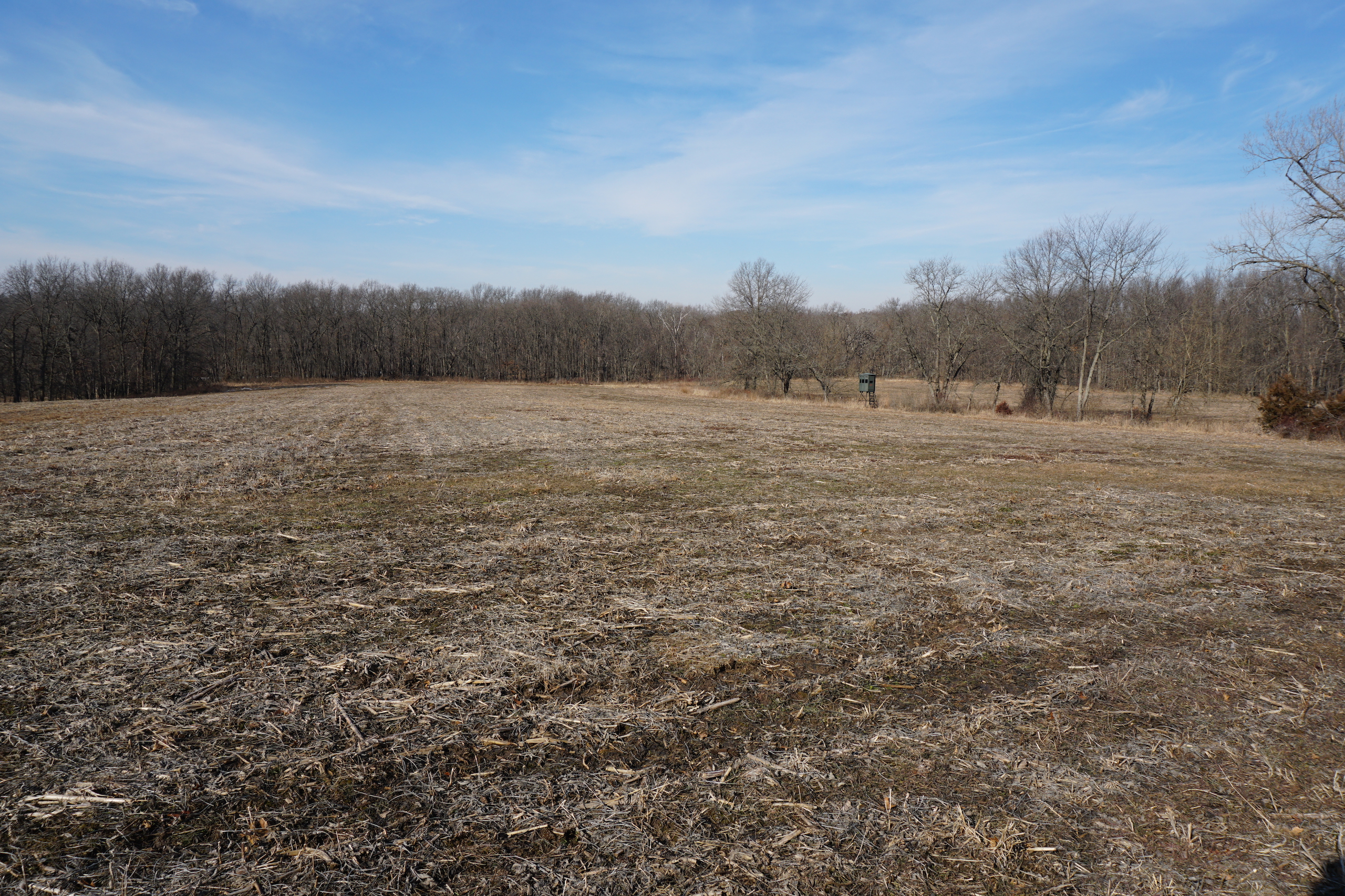 - Large crop fields to the north, south and west, and this farm provides the best deer holding cover in the area
