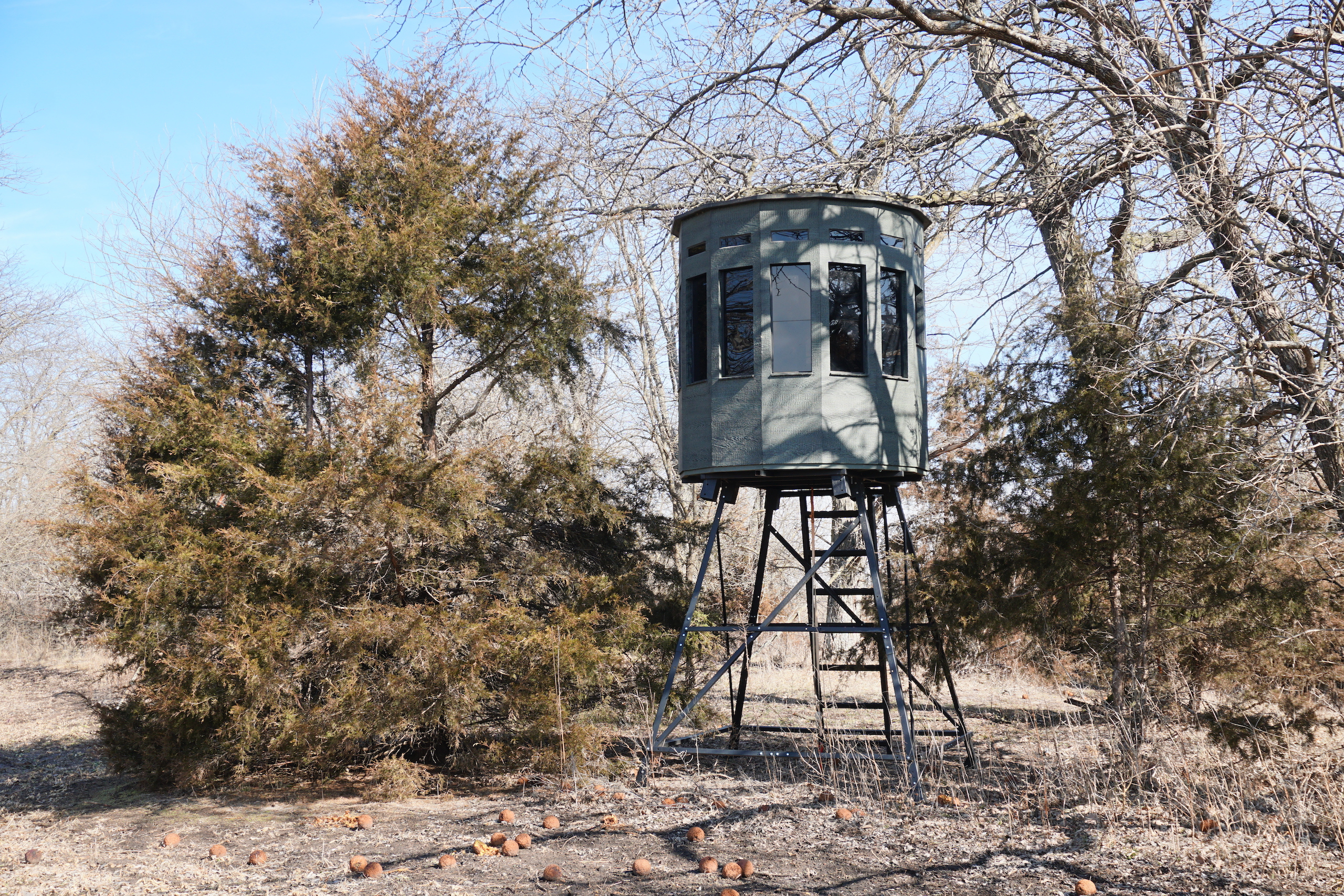 - 3 brand new 360 deer blinds on steel towers are set up on the farm, one other box blind in the creek bottom