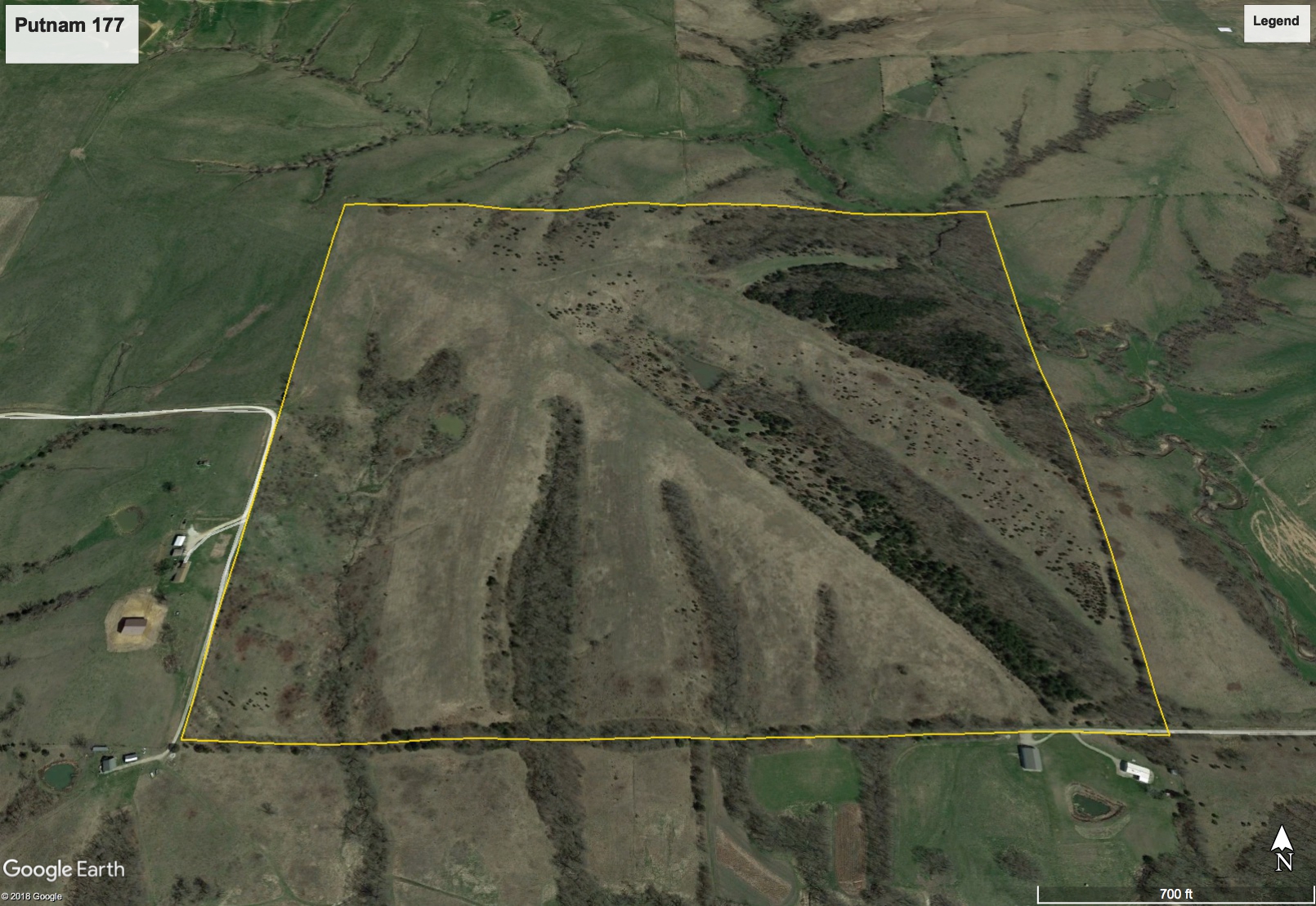- Couple drainages on the farm provide nice travel corridors for deer