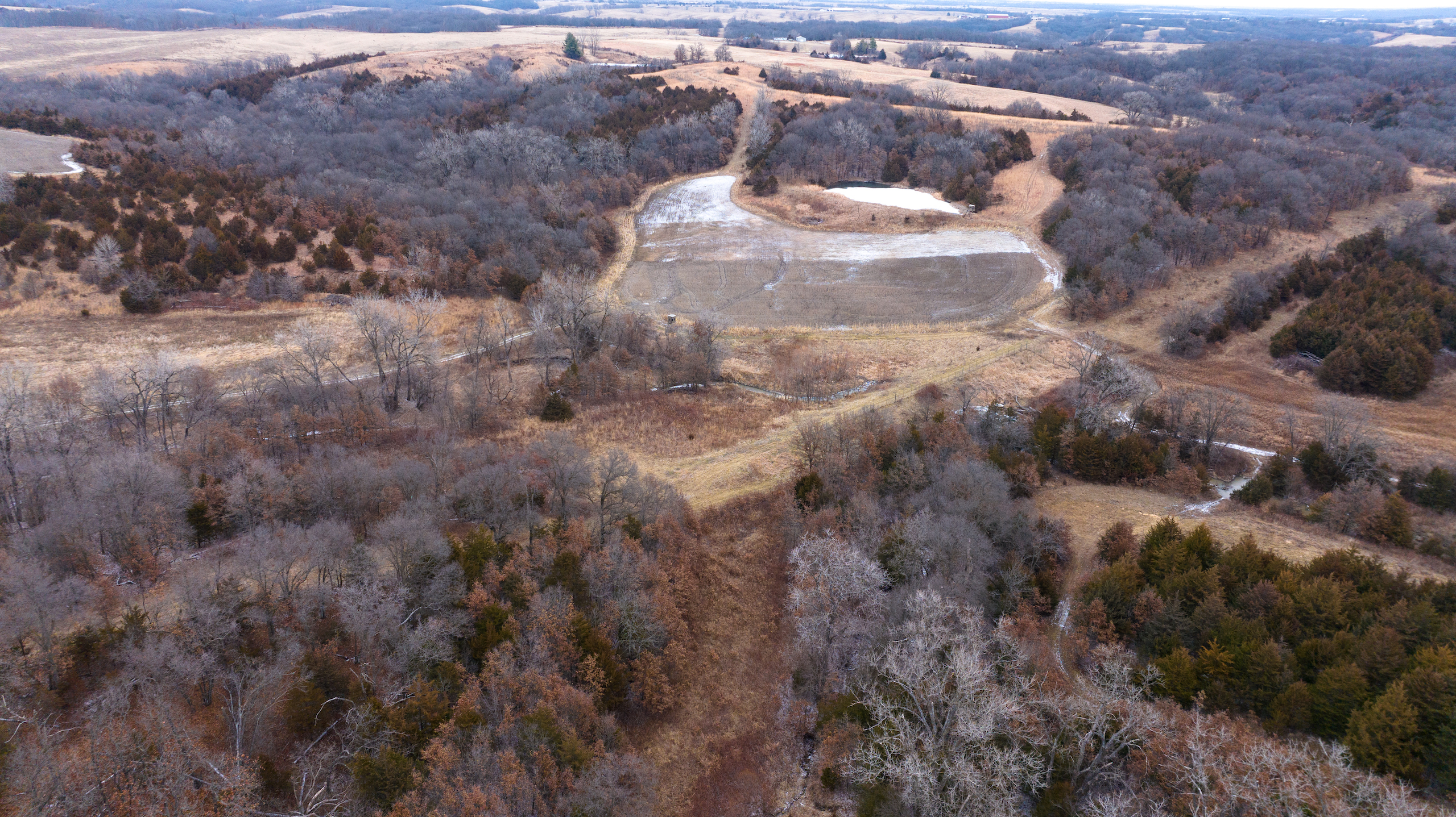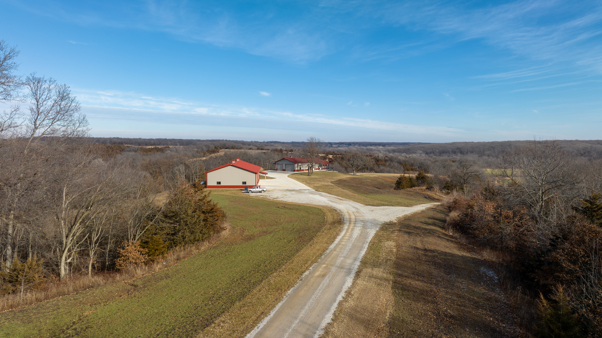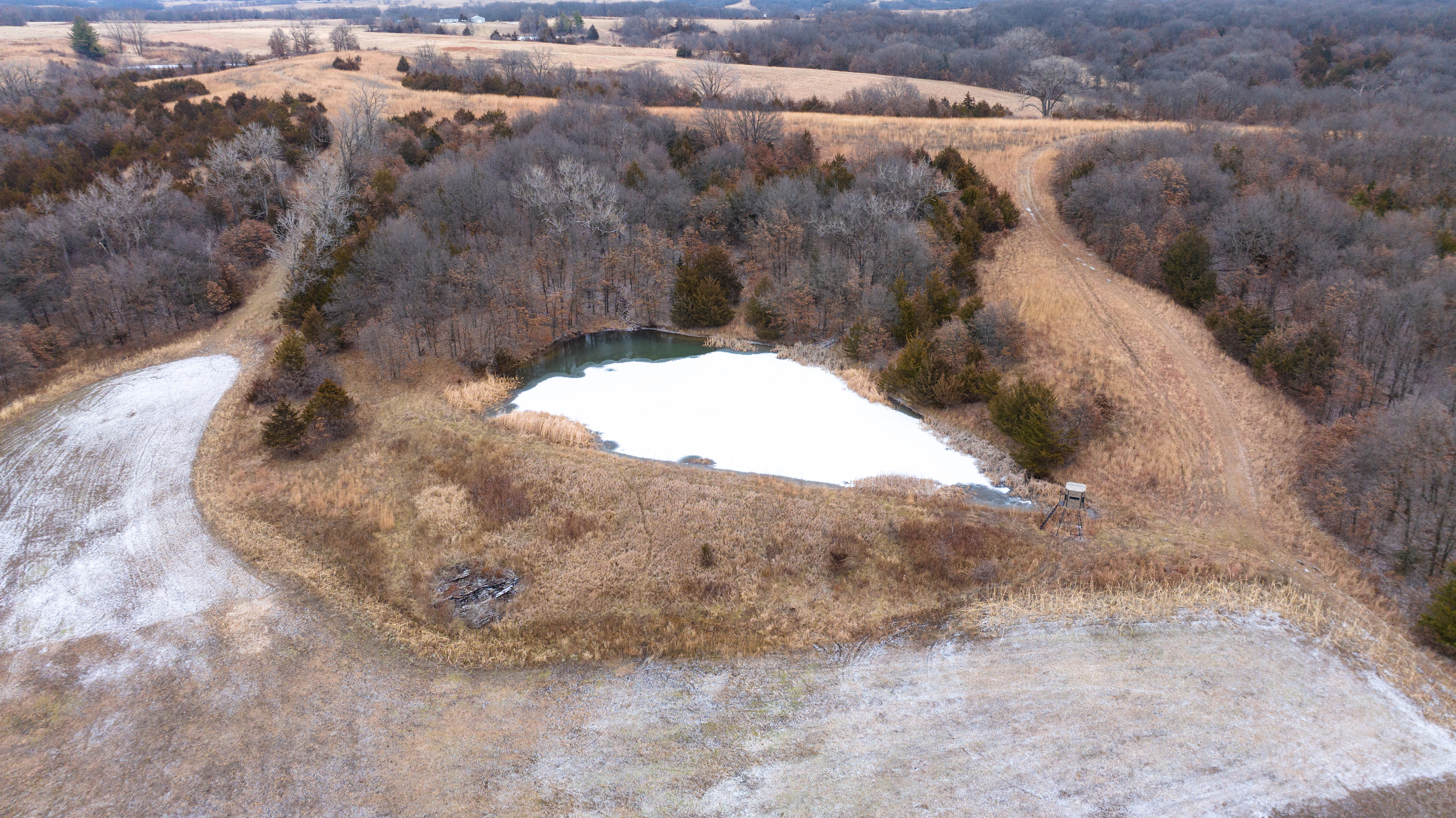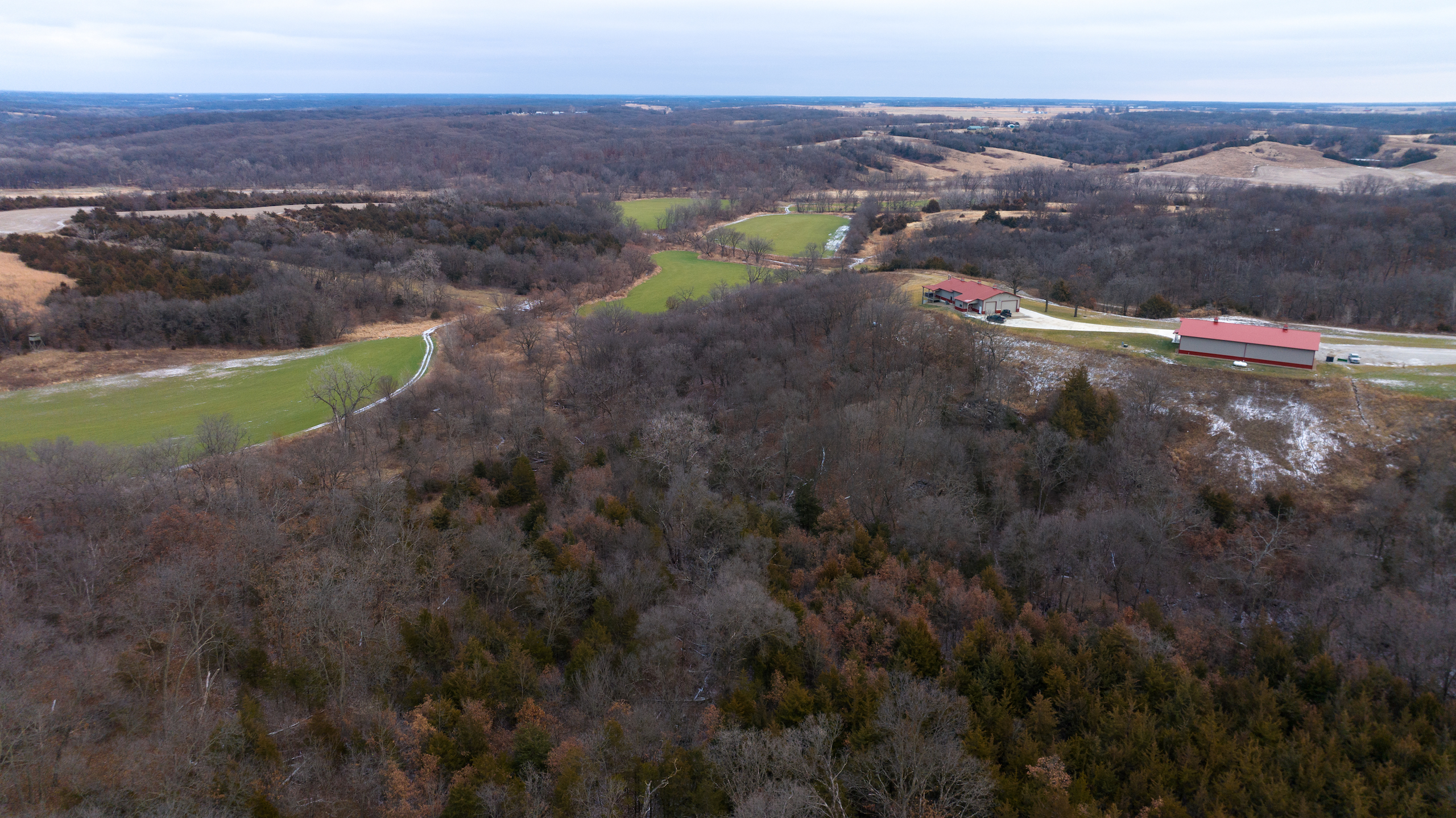- Excellent access from all directions, north and south end access from dead-end roads, main access to the farm and lodge is off of highway CC from the west