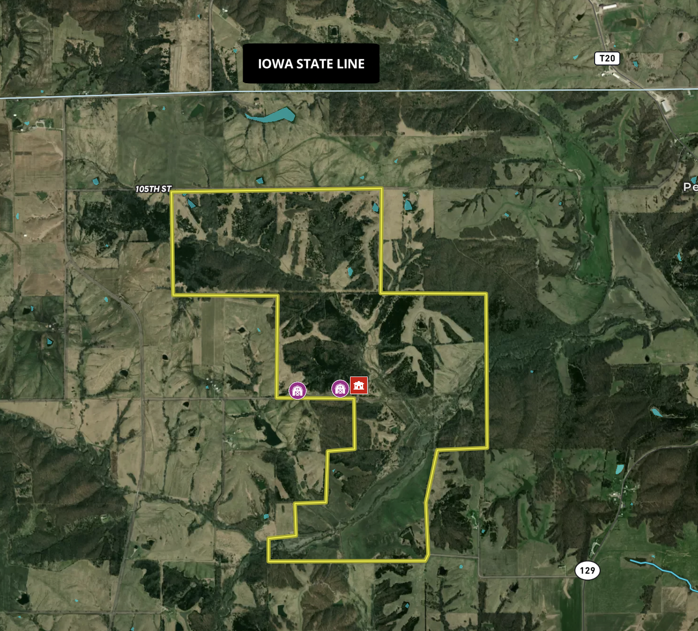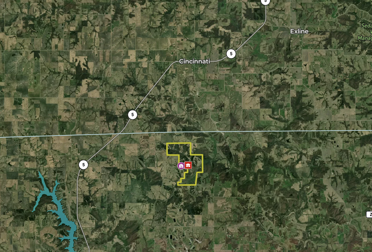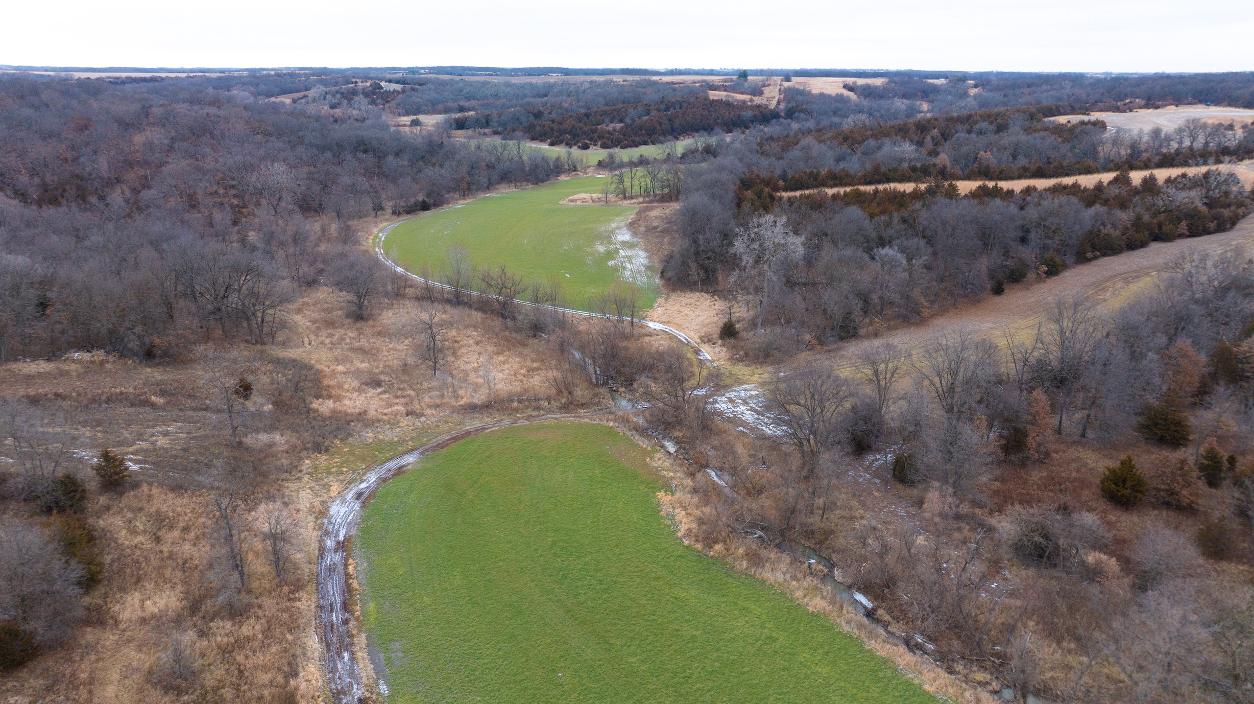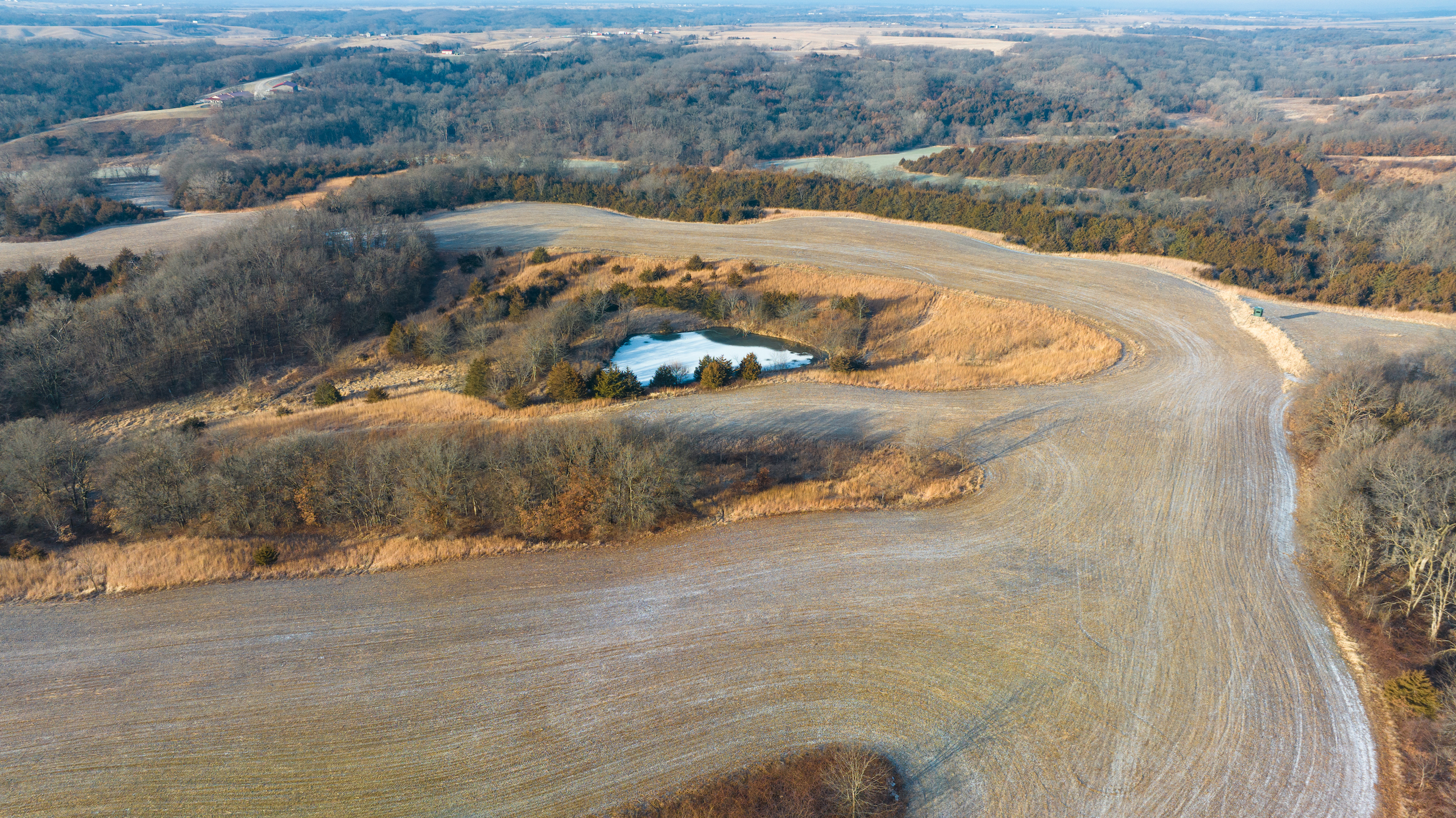- Excellent access from all directions, north and south end access from dead-end roads, main access to the farm and lodge is off of highway CC from the west