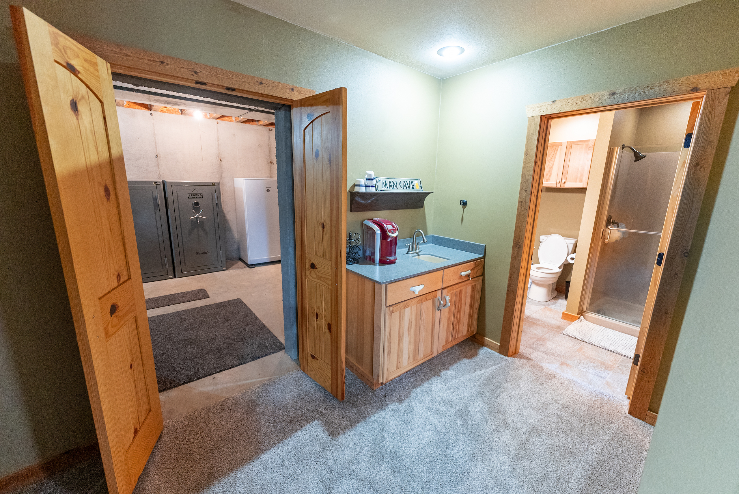 - Walk in cooler, scent free equipment room with custom cabinetry, washer and dryer and shower
