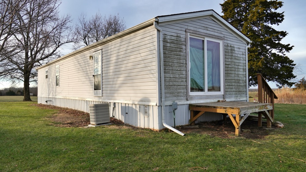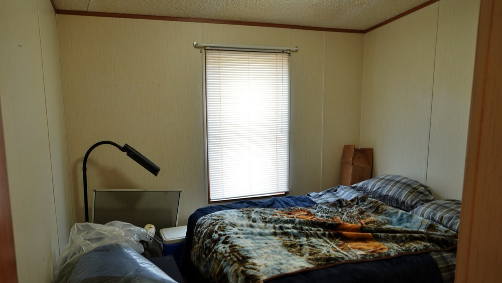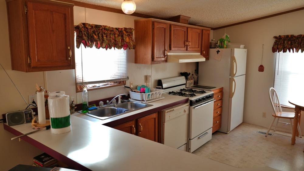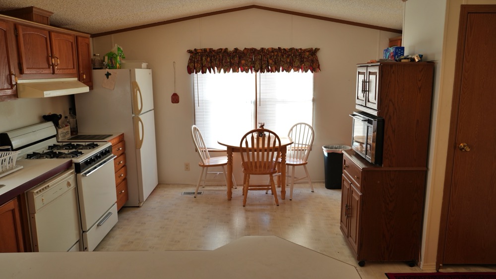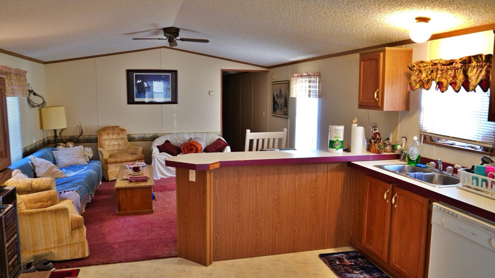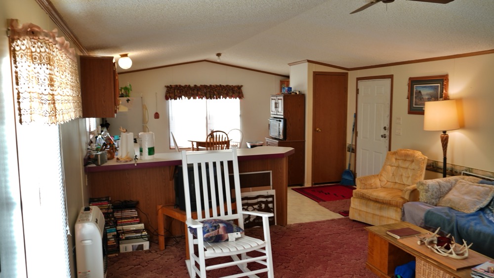 - Trailer home with 2 bedroom, 1 bath and open kitchen and living room area