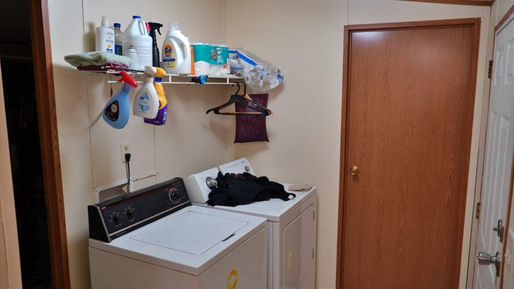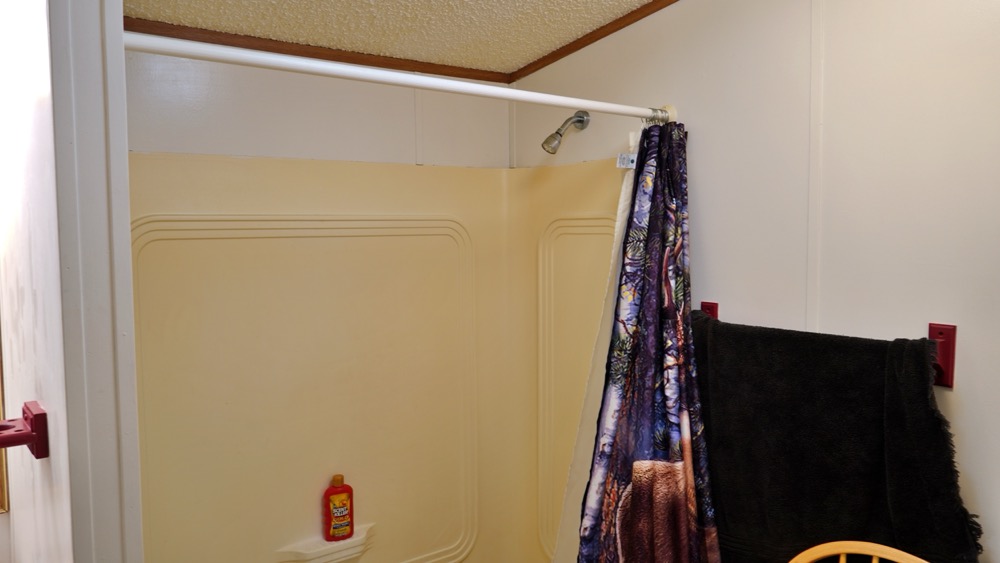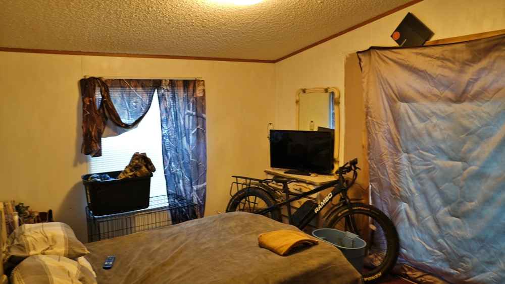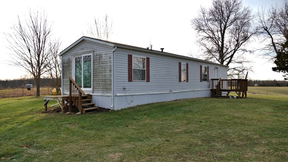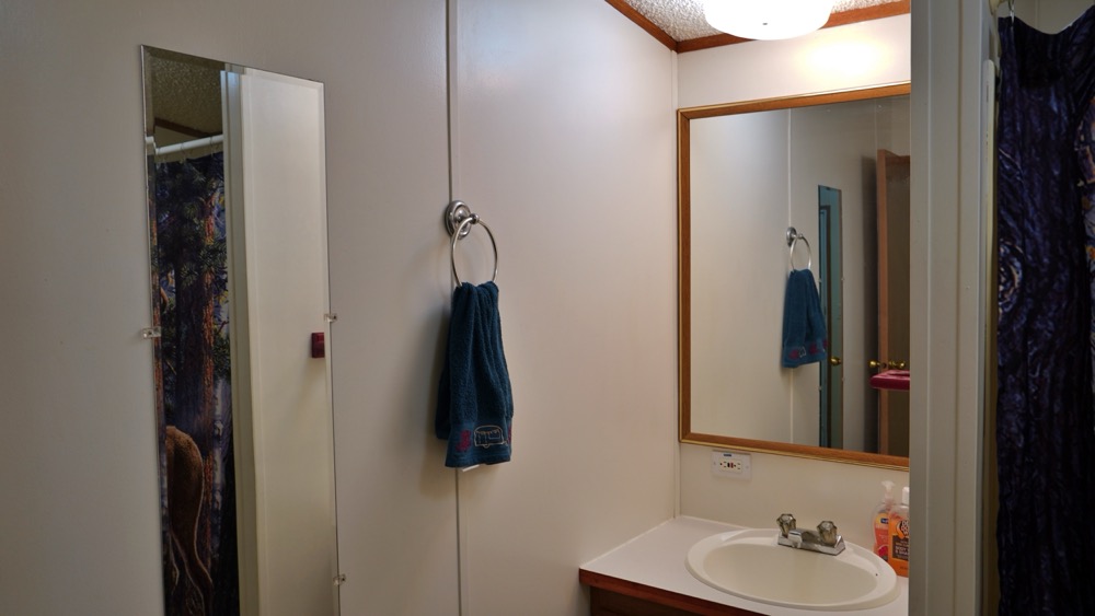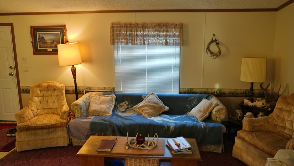 - Trailer home with 2 bedroom, 1 bath and open kitchen and living room area