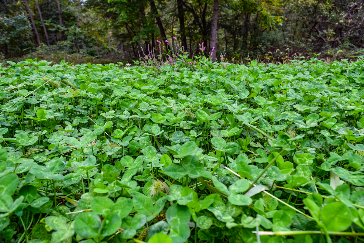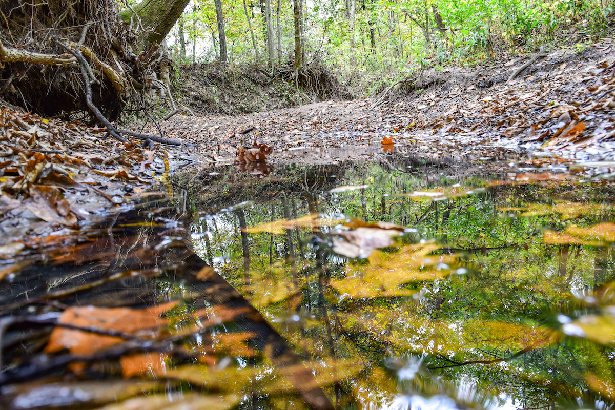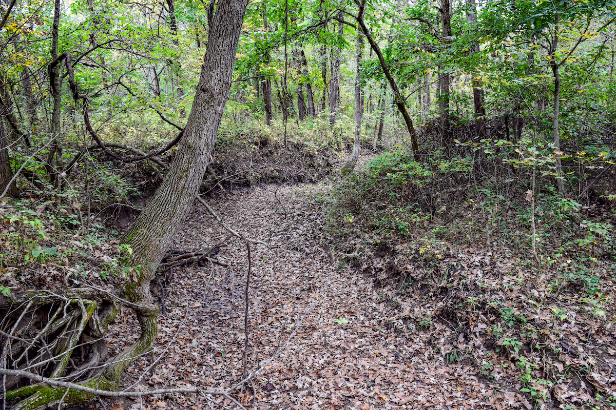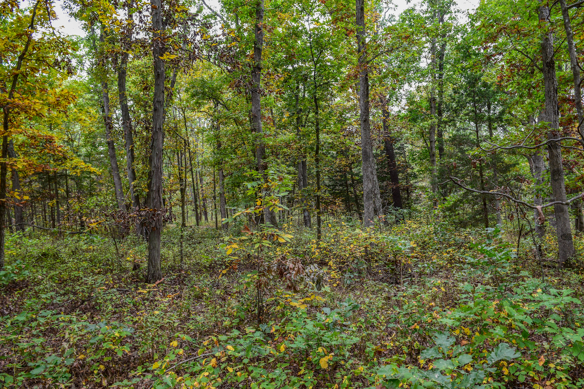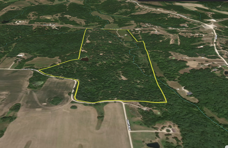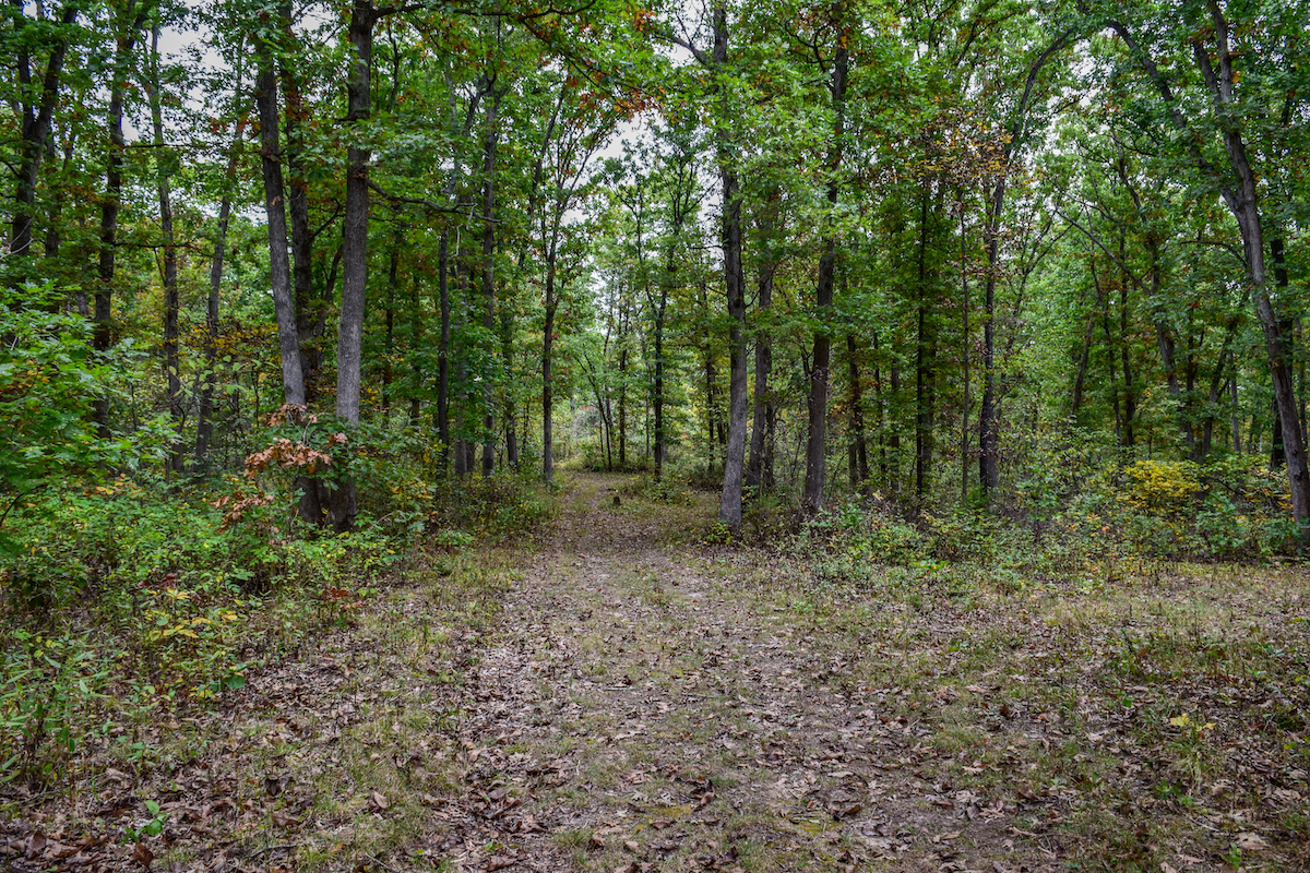 - Mostly timber with established trails and pond