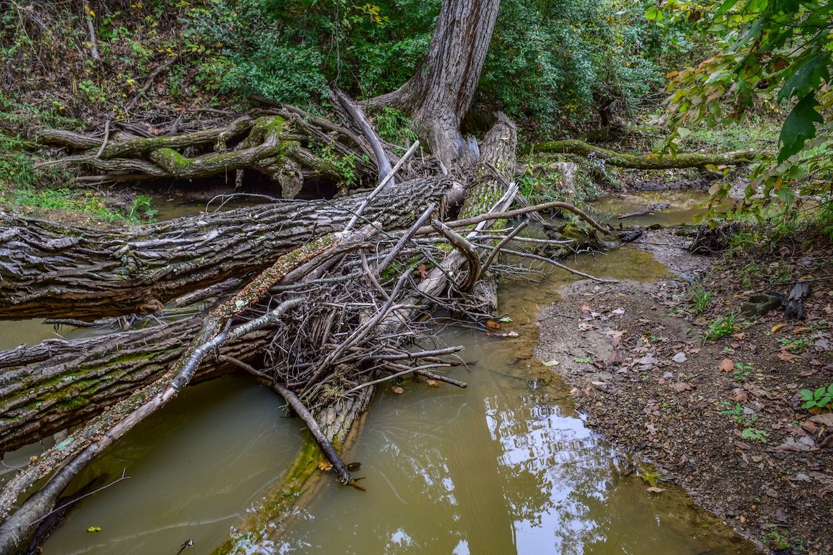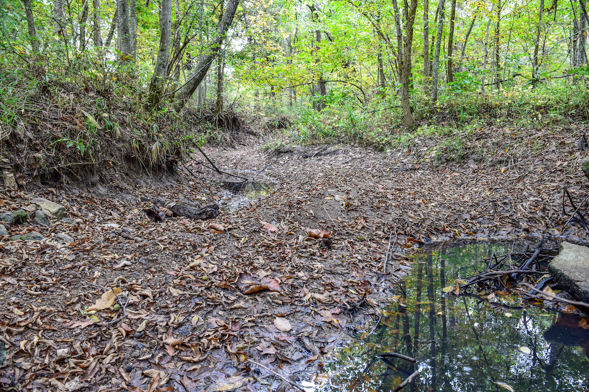 A well-maintained trail system winds throughout the property, leading to multiple food plots and a deep, secluded pond stocked with panfish, which the current owner’s family enjoys for swimming and fishing. The diverse hardwood stand, creek and neighboring crop fields create a thriving habitat for whitetail deer and turkey, making this tract a proven producer for hunting and outdoor recreation.