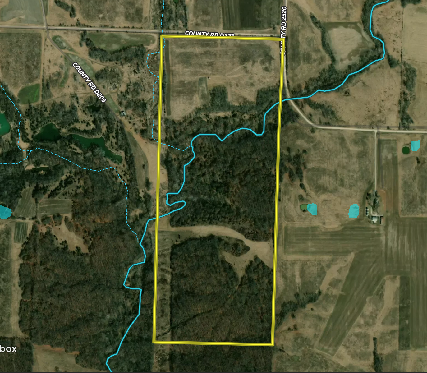 - 65 acres m/l of timber and brush