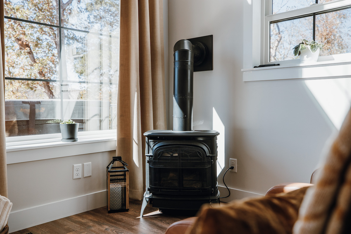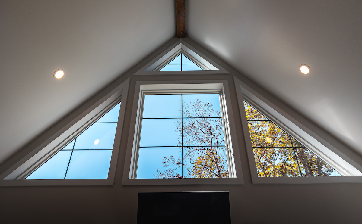 - Cozy main-level living area with gas fireplace and large windows