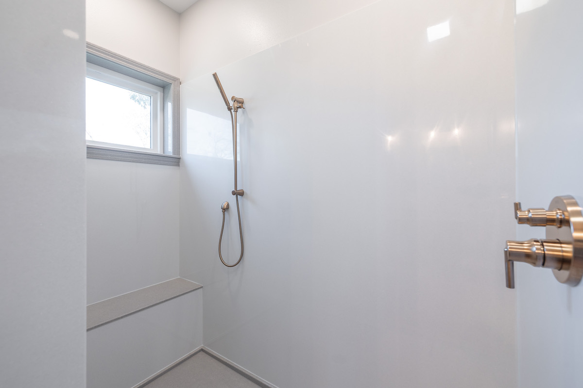 - Main-level bathroom with luxurious rain shower