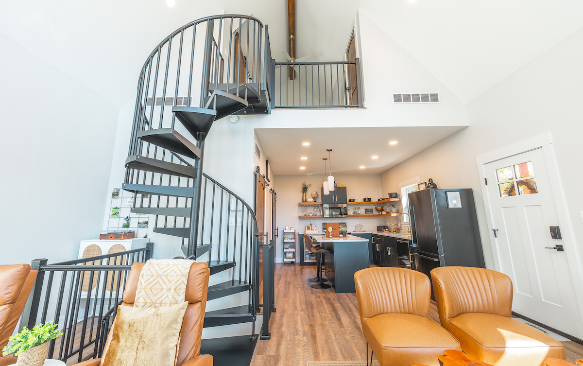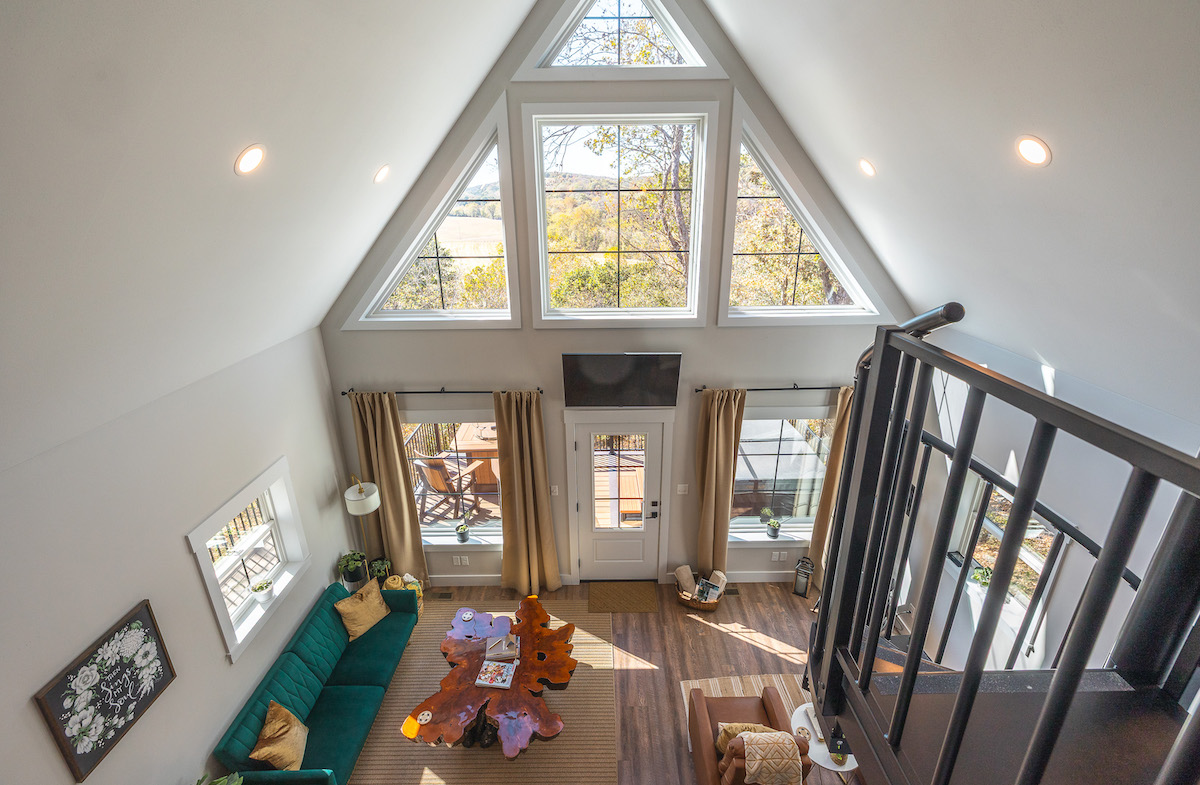 - Loft bedroom with queen bed, soaker tub, and hilltop views