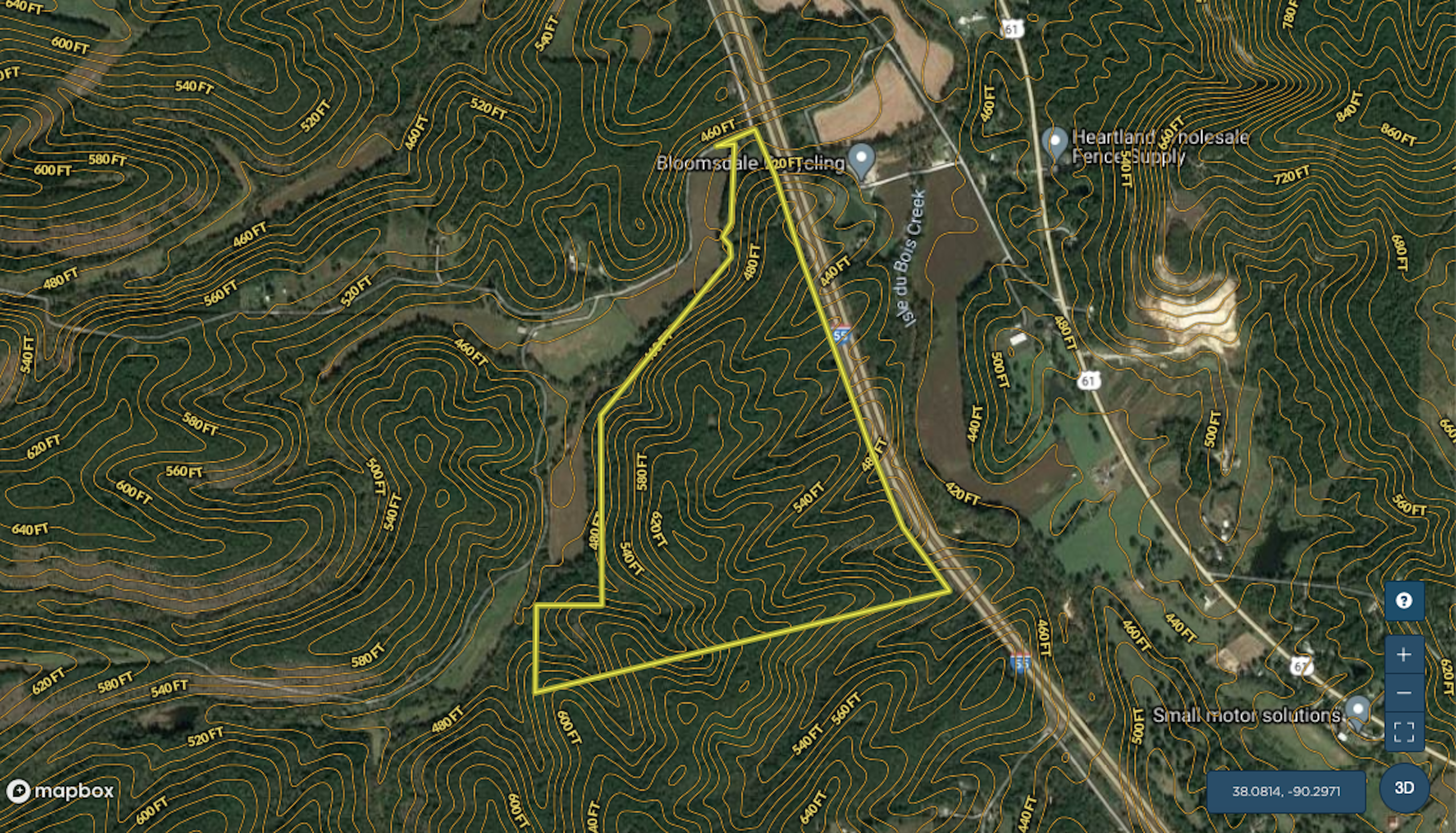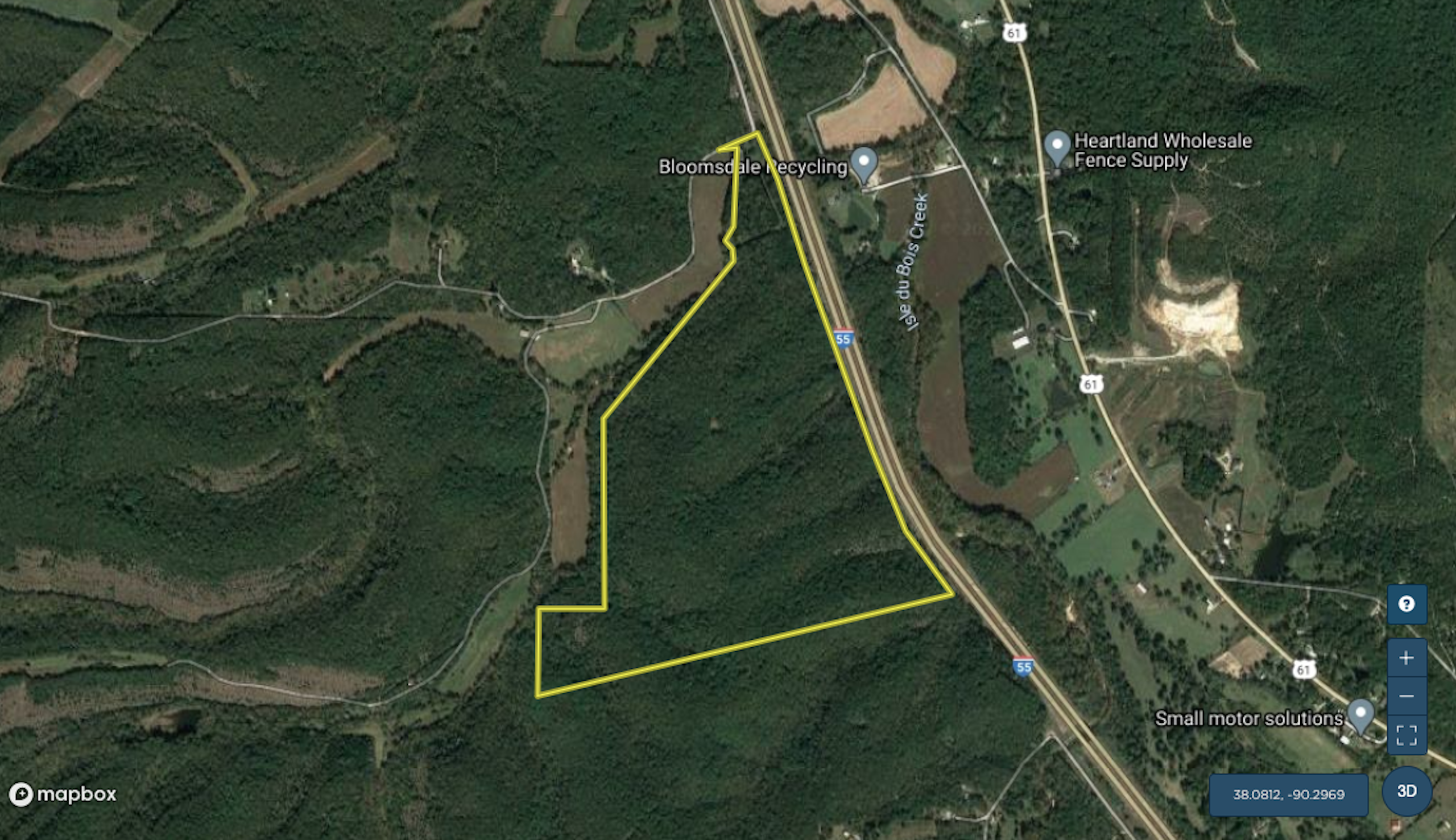 This all timber hunting and recreational property is located 4 miles north of Bloomsdale at the end of Noce Rd with very easy access to I-55. The property offers a nice stand of hardwood timber with some being marketable if buyer desires a timber harvest. The topography is gently rolling to rough and offers some great trails for ATV riding. There is electric available on the north side of the property for a home or cabin and there is plenty of hunting opportunities available though out the entire property. If you are looking for your own personal hunting and recreation retreat in this area you should check this offering out. Call today to set up your own private tour.