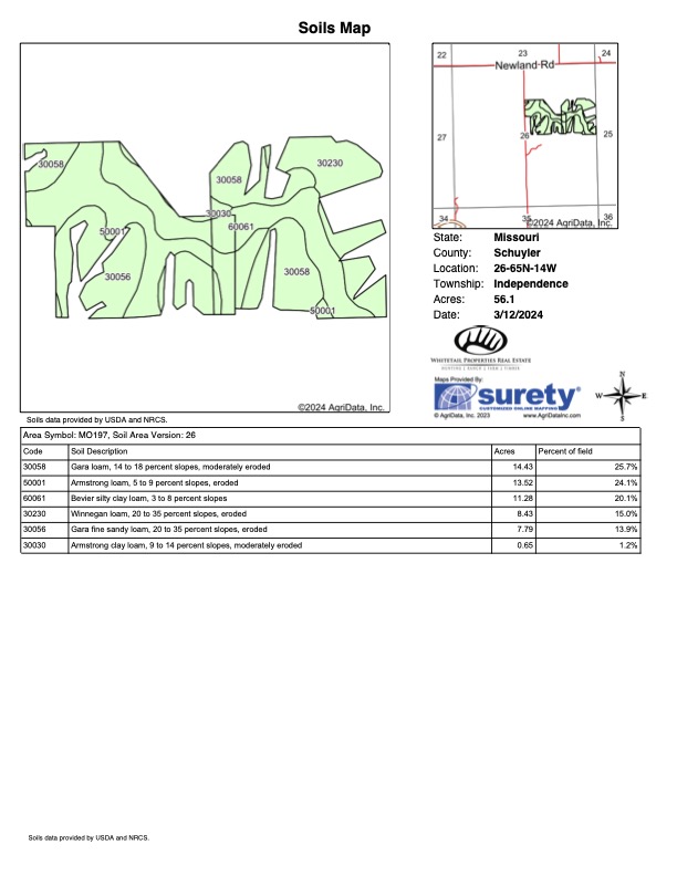 - 20+/- acres of tillable with a verbal rent agreement for $125/acre
