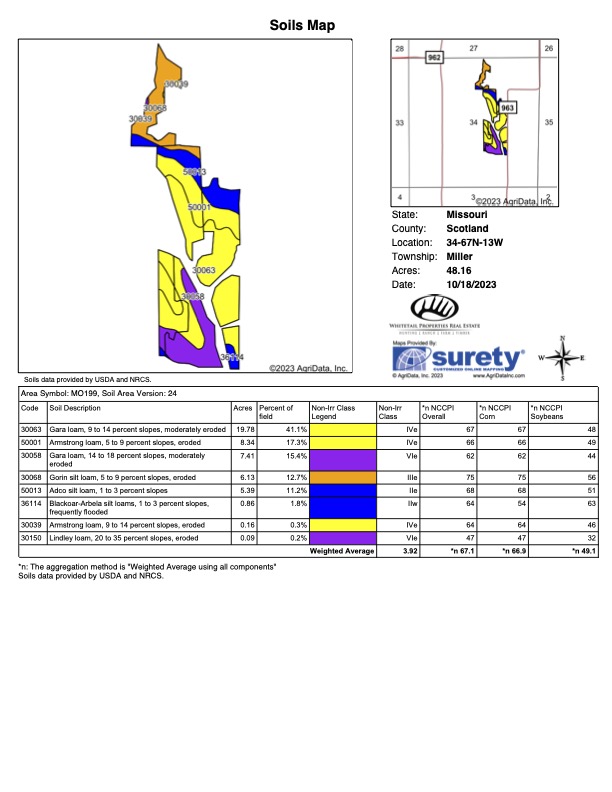 - Property located approximately 1.2 miles south of the Iowa State line, in Northwest Scotland Co
