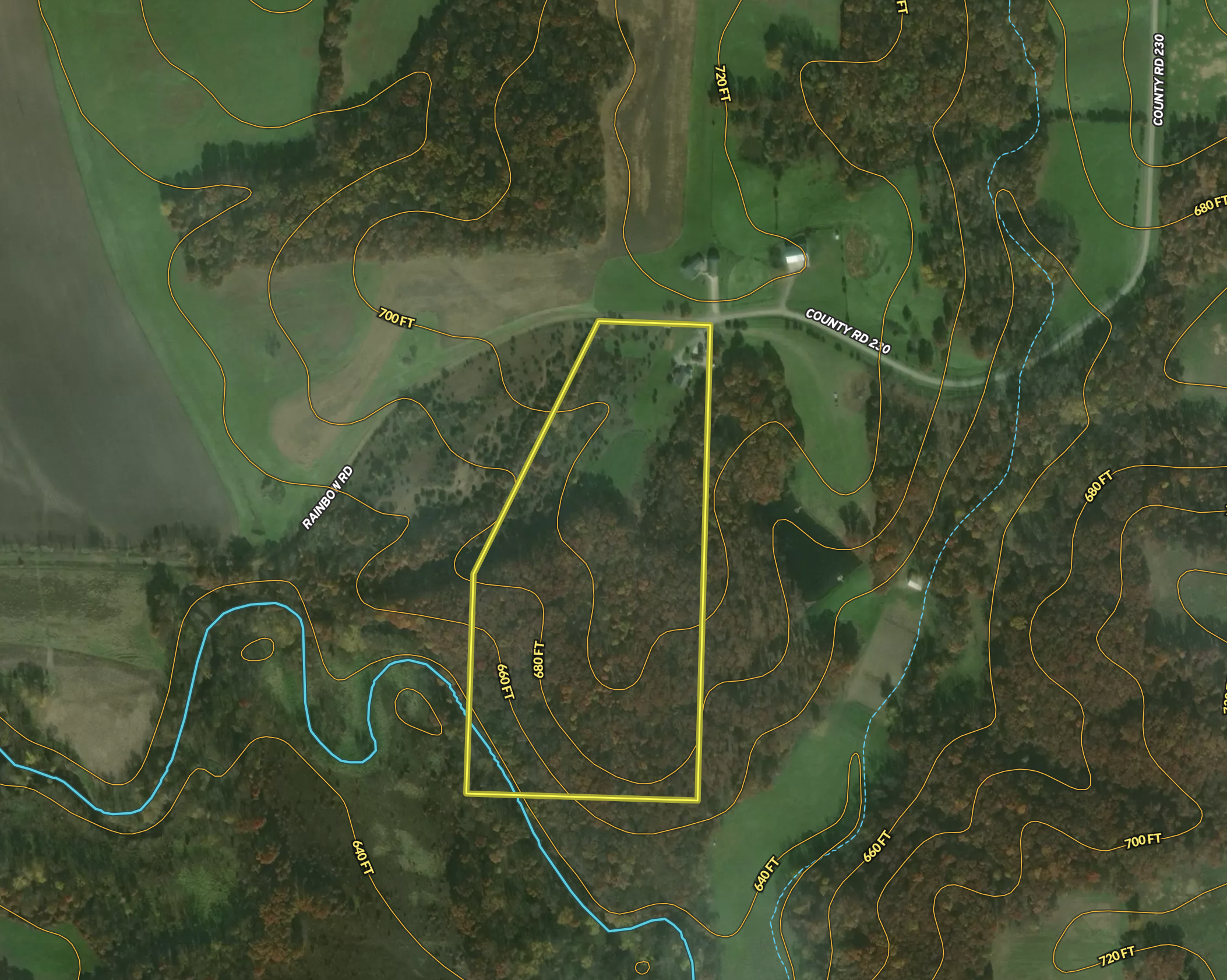 - Land lays very nice, and has a nice topography change from the main ridgetop down into the Bear Creek basin