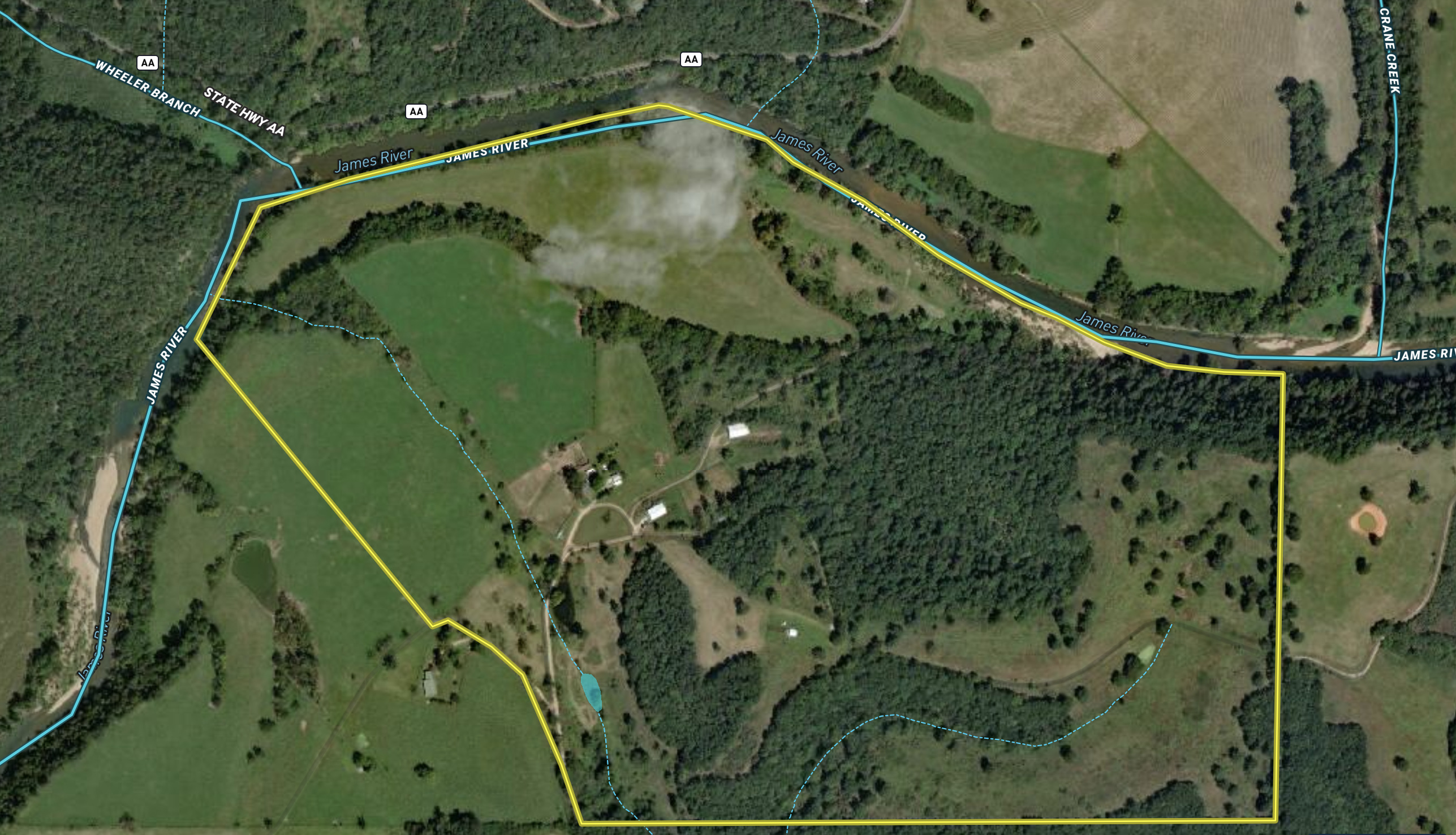 Welcome to Horsecreek Ranch. The outdoor lifestyle is alive and well everywhere you turn on this beautiful property. You’ll find amazing views on the rolling ridges converted to pasture, able to support 40+ cow/calf pairs. Mature hardwood timber lines the hillsides and draws with occasional glade areas dotted with rock outcroppings and cedars that offer superb cover for the wildlife calling this diverse property home. The bottom ground is equally diverse with 30+ acres currently in hay production. Several acres of the bottoms have been utilized for bird dog training and hosting field test events. Bird hunting enthusiasts from all over the nation have enjoyed a stroll in the tall grasses while their dogs show off their talents and abilities. James River access is very nice offering fishing opportunities for world-class smallmouth bass as well as many other species known to the Ozarks region. This area of the James River lies between Crane Creek and Wheeler Branch and is just a few miles from the Kerr Access, well known for river floats. The majority of the floats are downstream of this property allowing the owners privacy and seclusion on their portion of the river. The 2600+/- sqft home has been well kept and has several updates. The formal dining room and wrap around deck take in the valley views and are sure to please family and guests as you entertain. All of this and more lies at the end of a dead-end road. If privacy and seclusion are important to you, call us today to book your private showing of Horsecreek Ranch. We look forward to your visit and helping you make this your personal outdoor paradise.