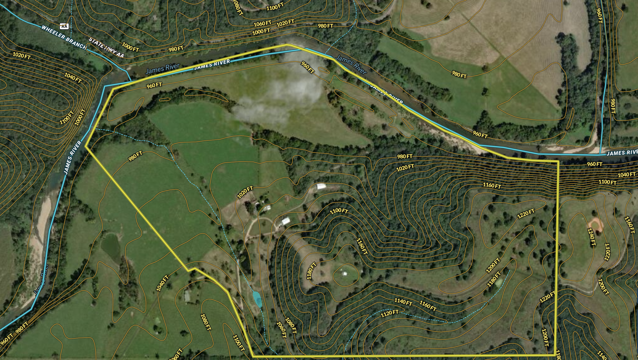 - Long range views and approximately 1 mile of James River access