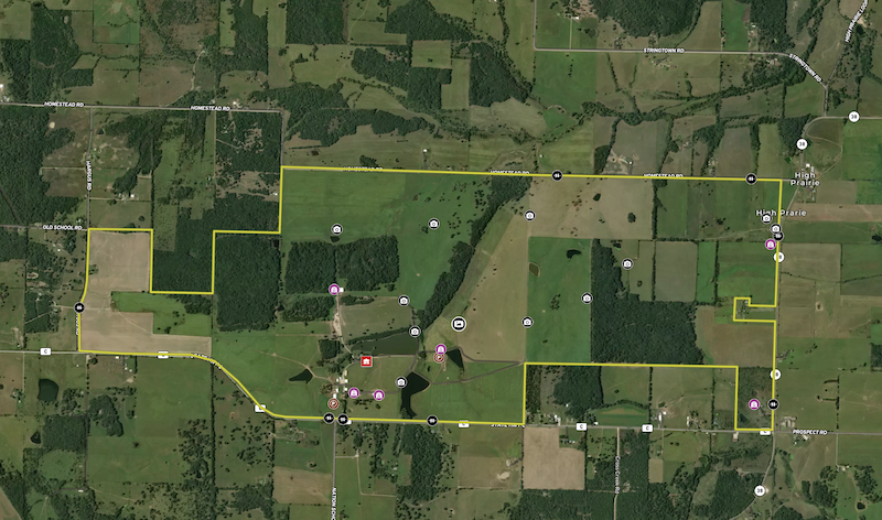 Food plot, Trail network, Tree stand/Blinds, Internal Road Network, Gated entrance, Irrigation system, Pits, Water control Structures, Livestock facilities, Grain Storage, Equine facilities