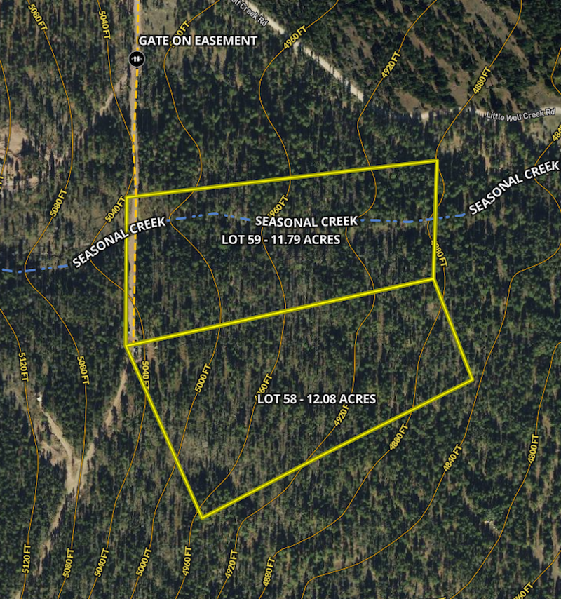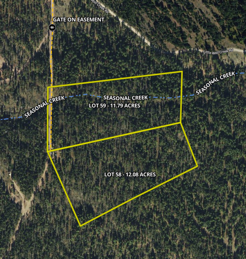- Lots are accessed via a recorded easement which is directly tied to the county maintained Little Wolf Creek Road