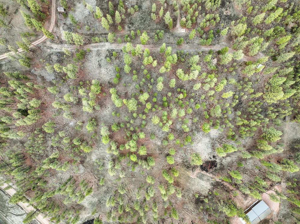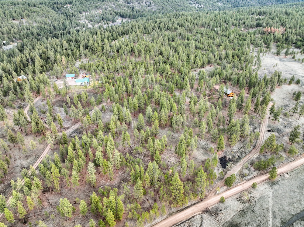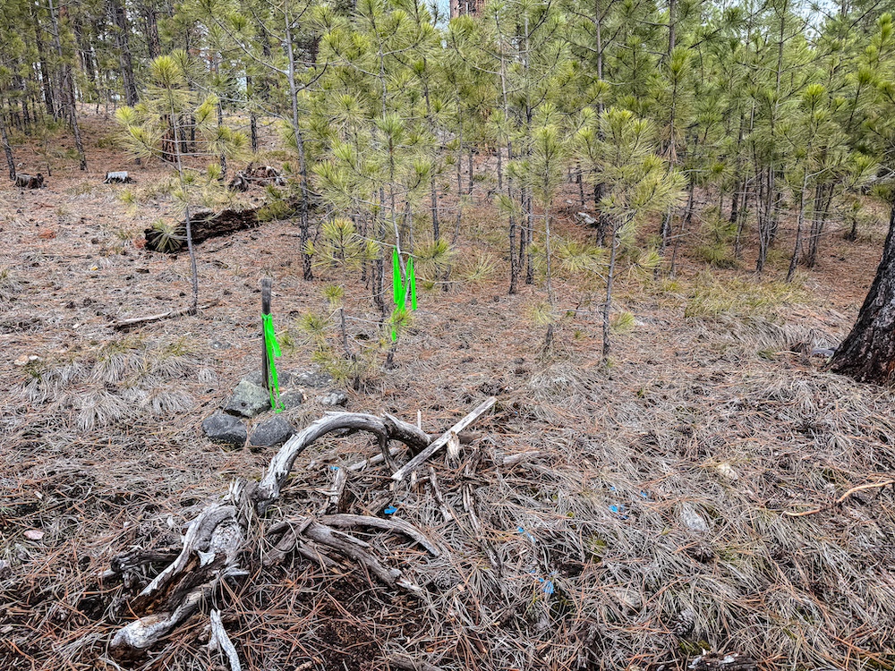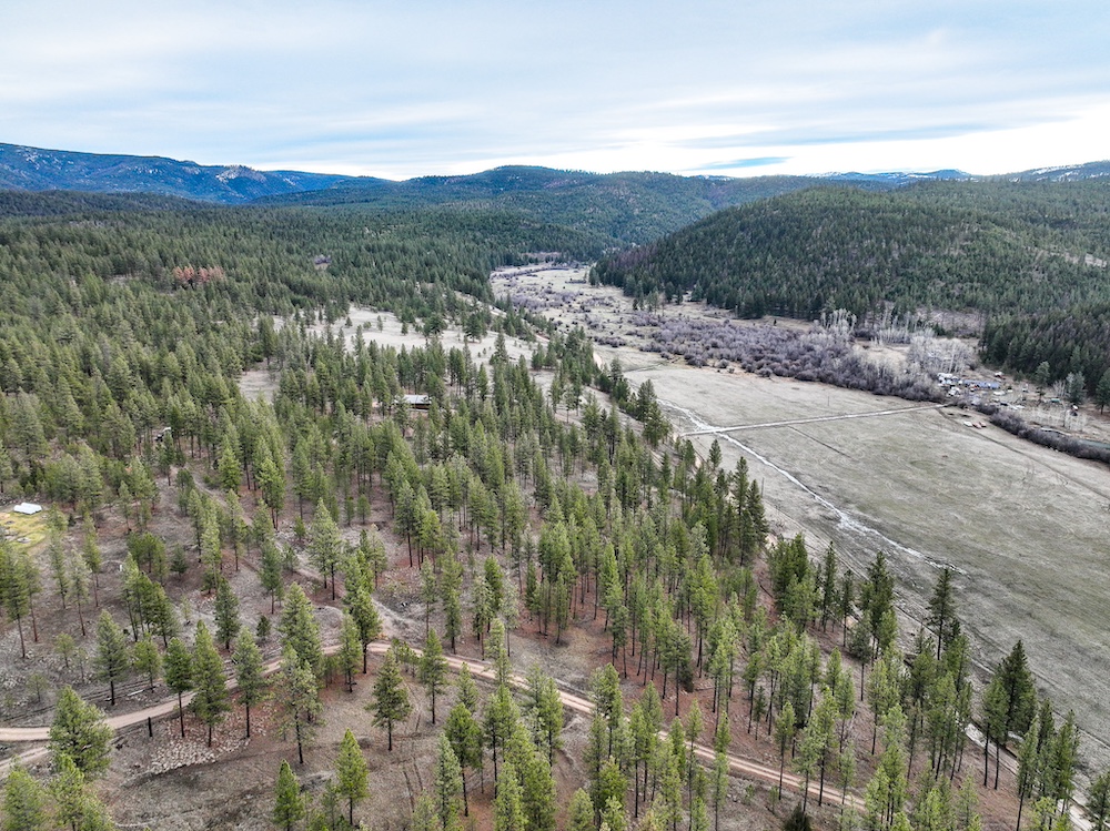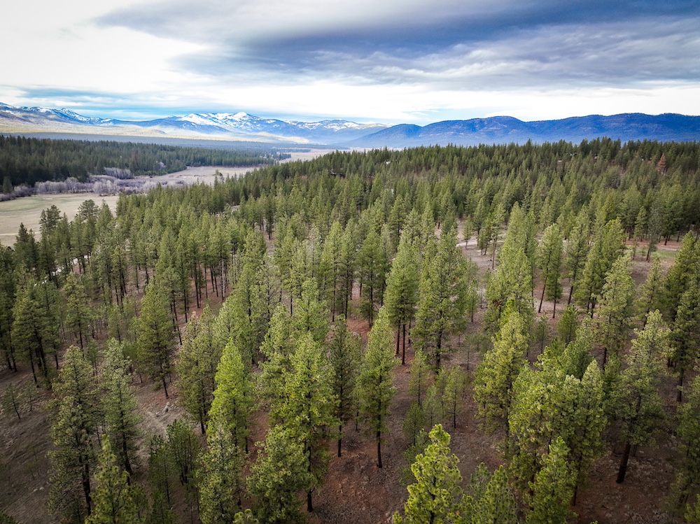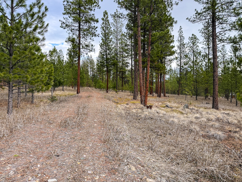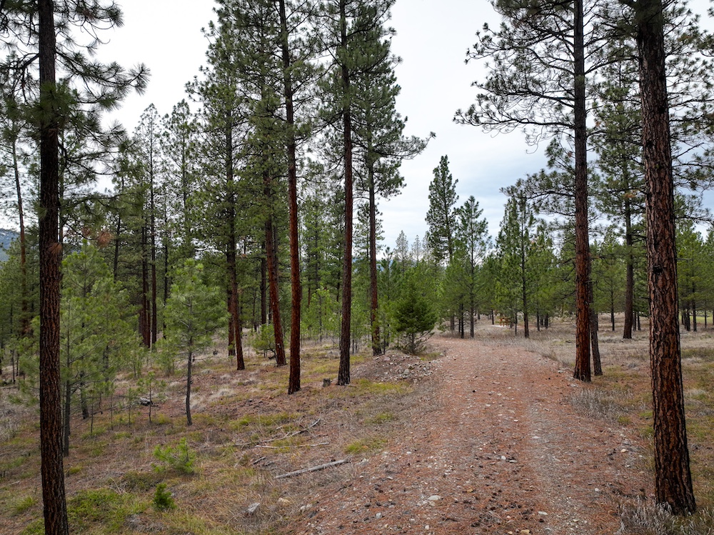 The land features an open stand of mature ponderosa pine, with scattered Douglas fir throughout. The spacing of the trees creates an open forest setting with good natural light and ease of movement, while maintaining a wooded character. The balance of usable ground and established timber supports a range of residential site layouts without extensive clearing.