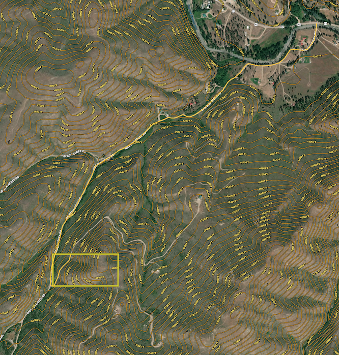 The lot looks to have access from Wet Draw Rd, but buyers are urged to inspect the lot's access points. There looks to be another route of access from the south, but it has not been confirmed. Power and phone are located along Dickson Creed Rd, at the property's southwest corner. Cell service is decent once you are higher up on the property.