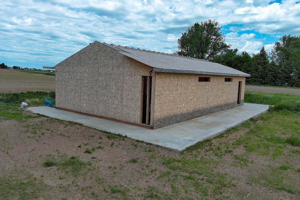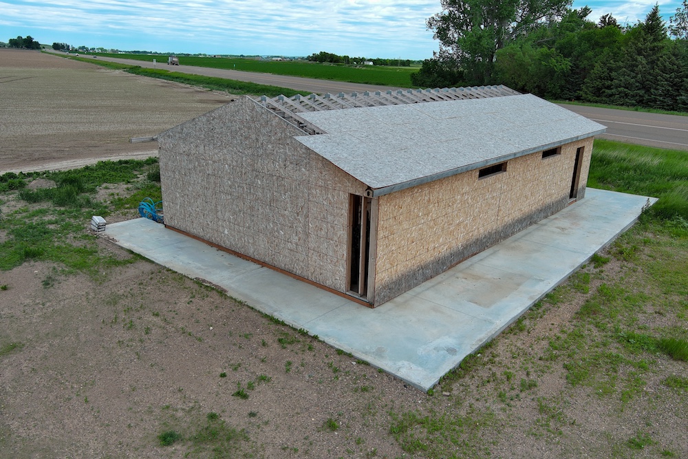 - Concrete pad and building shell