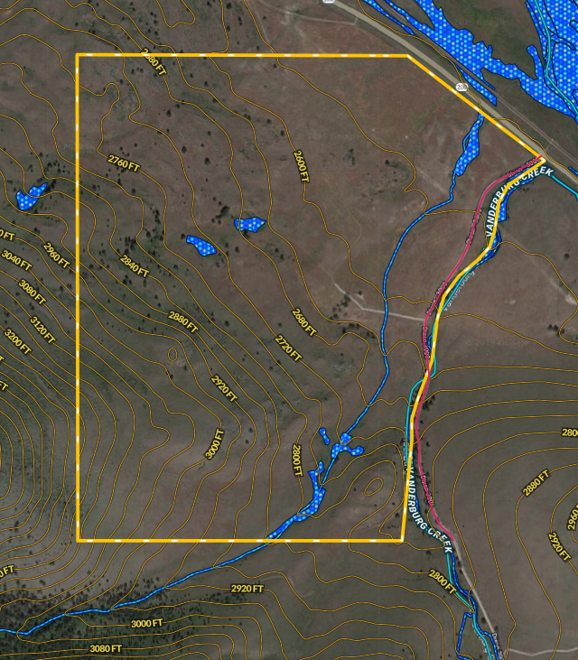 - Vanderburg Creek runs along the east side of this property