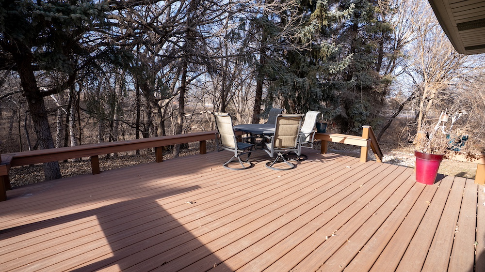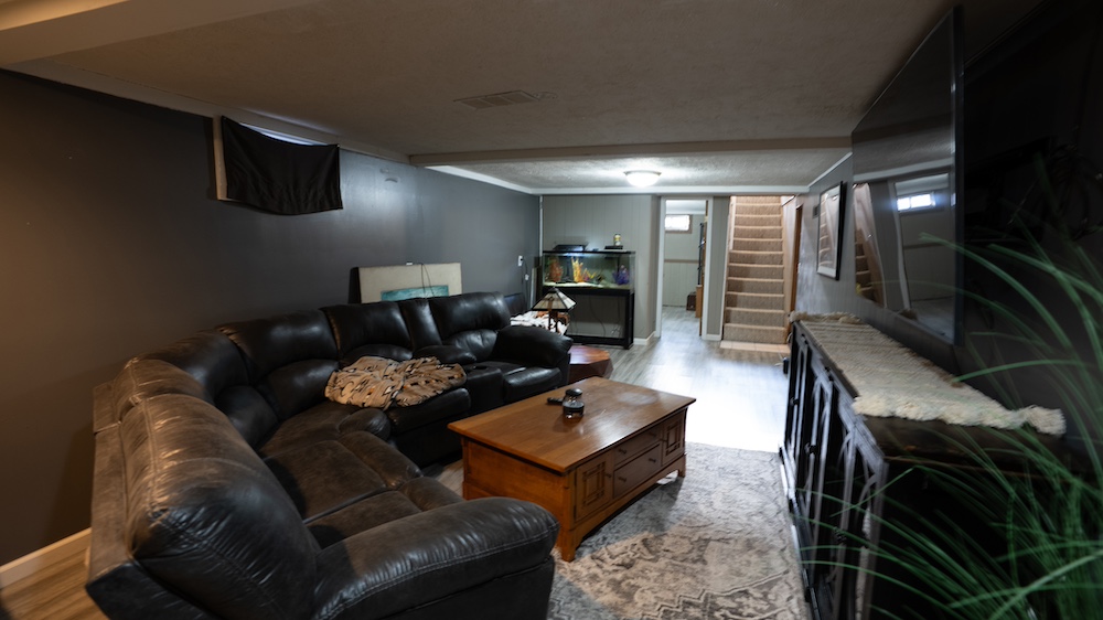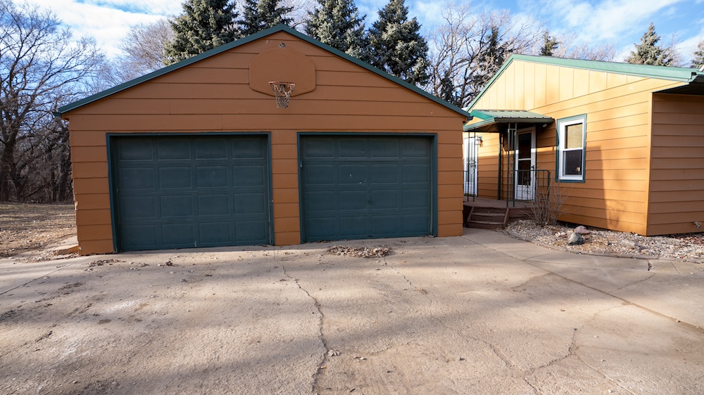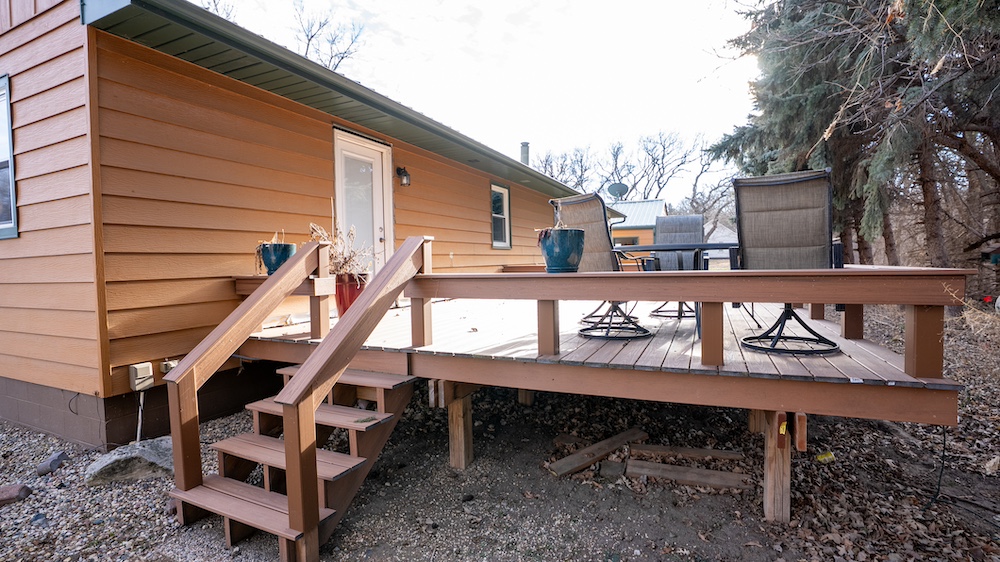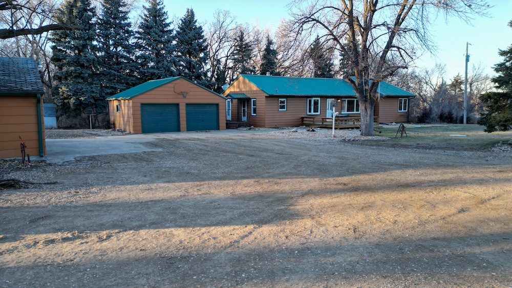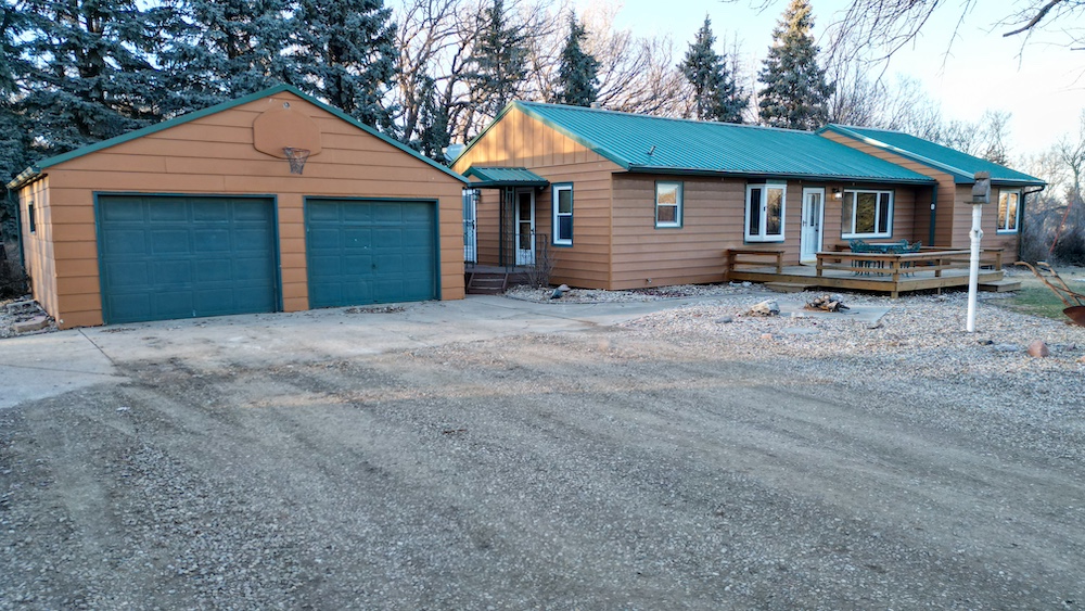The home features four bedrooms and two bathrooms, providing ample space for family living or hosting guests. Front and rear decks extend the living space outdoors and offer places to enjoy the surrounding tree cover and quiet setting. The home is positioned back among mature trees, offering shade, wind protection, and a sense of seclusion while still allowing convenient access to nearby Yankton amenities and recreation areas.